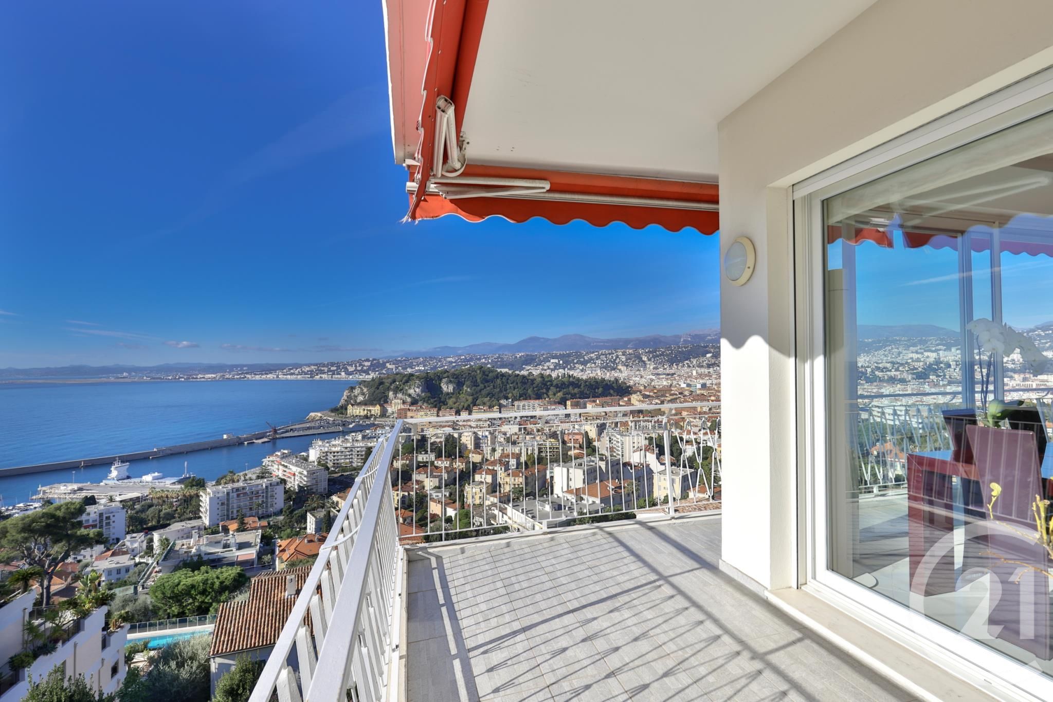 Nice - Mont Boron med fin utsikt Nice, i hjärtat av Mont Boron, i en vacker fastighet, mycket fin hörnlägenhet med 2 sovrum på 100 kvm med en fantastisk utsikt över änglarnas bukt. Lägenheten består av ett stort ljust vardagsrum med öppet kök. Terrass på 30 kvm, ett sovrum som öppnar mot terrassen,