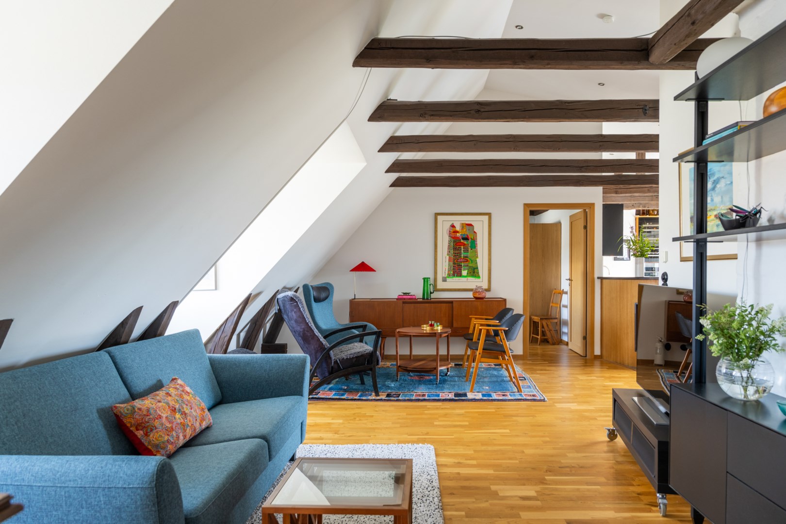 Ljus vindsvåning på central adress med takterrass i söderläge och generös takhöjd med synliga bjälkar - visst låter det härligt! Högt upp bland takåsarna är vyerna fria och himlen milt blå. Det vackert putsade huset på Norregatan 12 med pelare intill porten skvallrar om gediget 30-tal. Överst i
