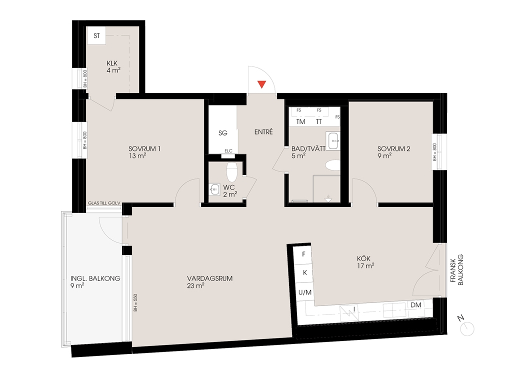 Master bedroom med klädkammare eller kontor. Badrum med tvättmaskin och torktumlare. Gäst-wc i anslutning till entrén.