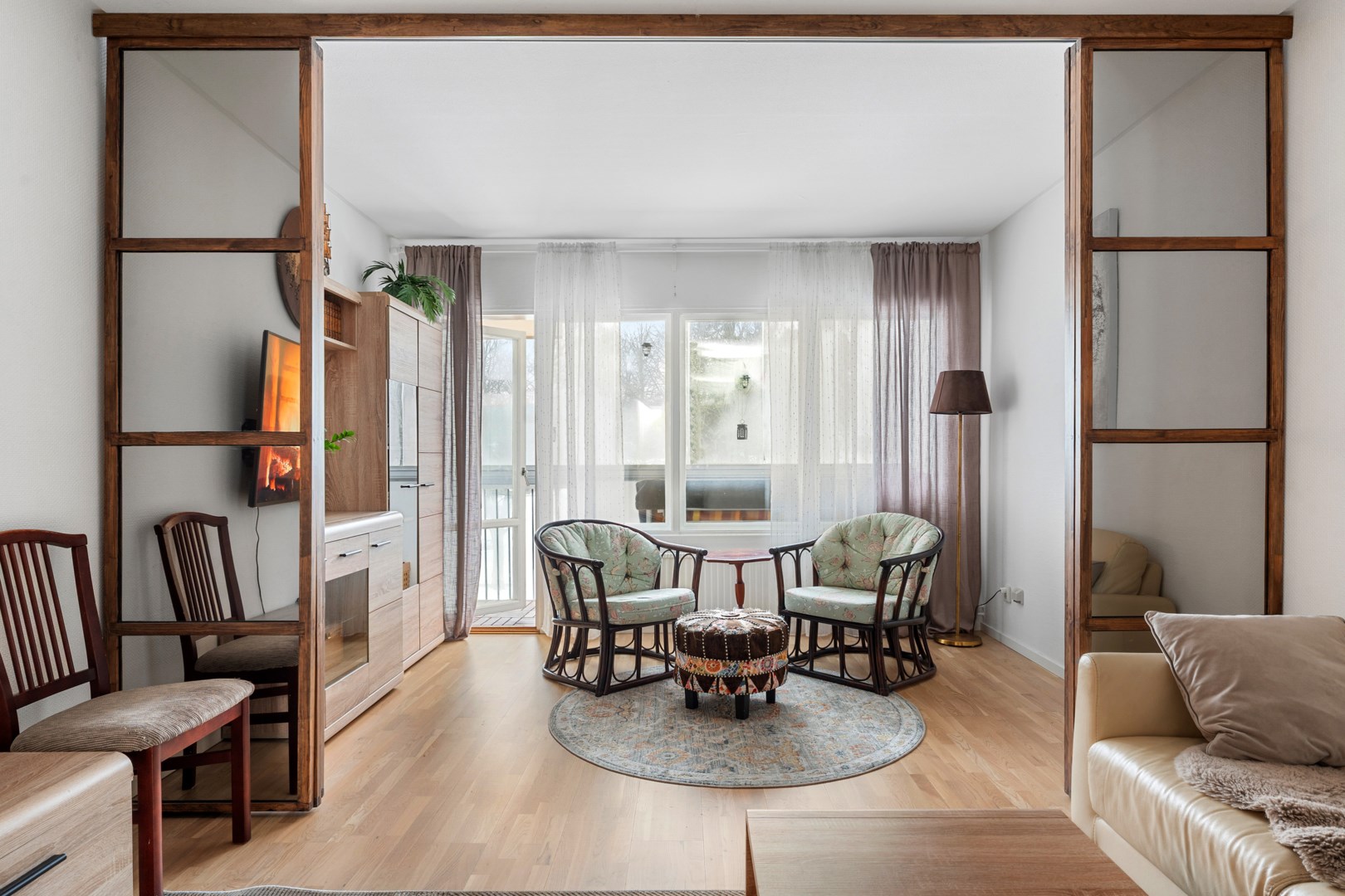 Välplanerad, välskött och insynsskyddad 3:a med möblerbar balkong mot skogsparti! Välkomnande och möblerbar hall i öppen planlösning mot matplats med plats för 6–8 personer. Renoverat och helkaklat badrum. Välplanerat kök. Ljust, rymligt och ombyggt vardagsrum med utgång till balkongen. Två