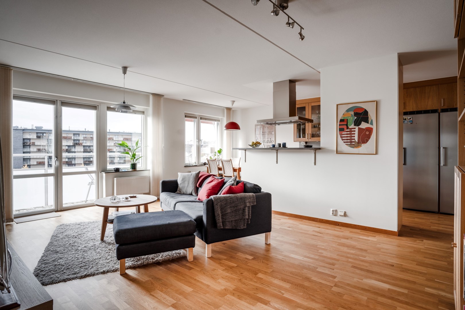 Högt upp på våning 5 med fantastisk utsikt och atmosfär finns nu tillfälle att bli ägare till denna fantastiska lägenhet som har allt man kan önska, med halvöppen planlösning, dubbla balkonger och dubbla våtutrymmen . Här erbjuds stora sociala ytor mellan kök och vardagsrum som inbjuder till