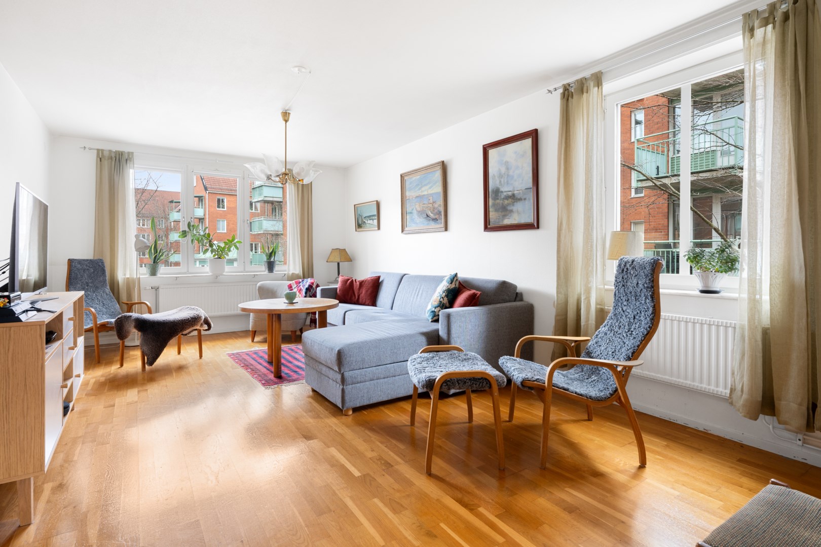 Välkommen till denna välplanerade och ljusa trerummare med genomtänkt planlösning, generösa ytor och ett härligt ljusinsläpp från tre väderstreck. Här erbjuds ett hem med goda förvaringsmöjligheter, två rymliga sovrum och en stor balkong som förlänger bostaden under årets varmare månader. Direkt