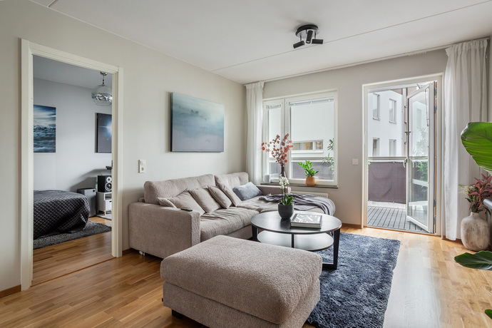 Fantastisk ljus och insynsskyddad trea högt upp i huset med balkong i sydväst. Genomgående planlösning med fina parkettgolv och släta vita väggar samt stora fönsterpartier i två väderstreck vilket medför ett otroligt ljusflöde i hela lägenheten. Välkomnande rymlig hall med avhängningsmöjligheter