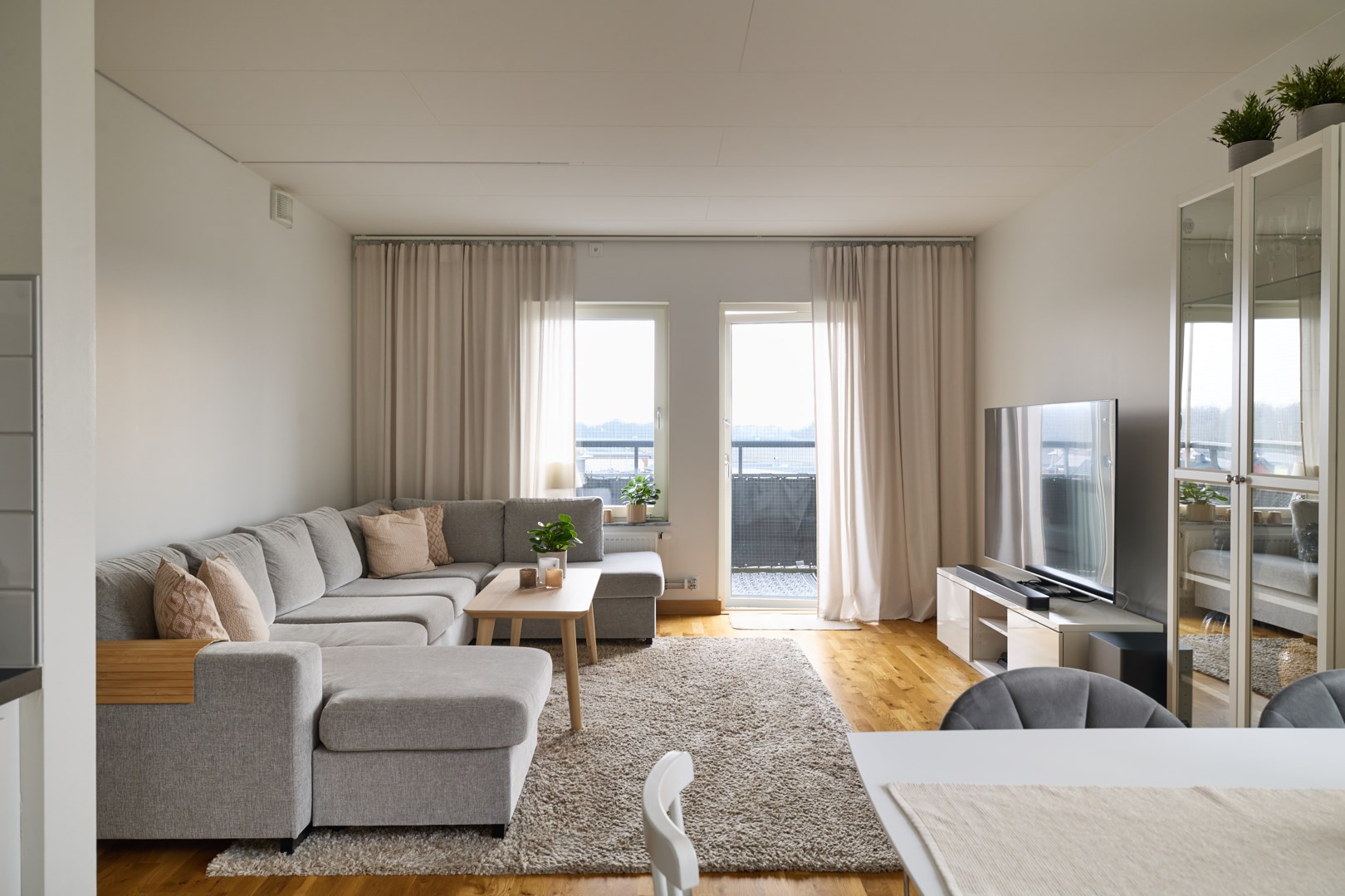 Välkommen hem till en modern gaveltrea på 73 kvadratmeter, belägen på tredje våningen med hiss från markplan. Välplanerat och modernt boende med öppen planlösning där kök och vardagsrum smälter samman och skapar en ljus och rymlig känsla. Här bor du bekvämt med ett helkaklat badrum med