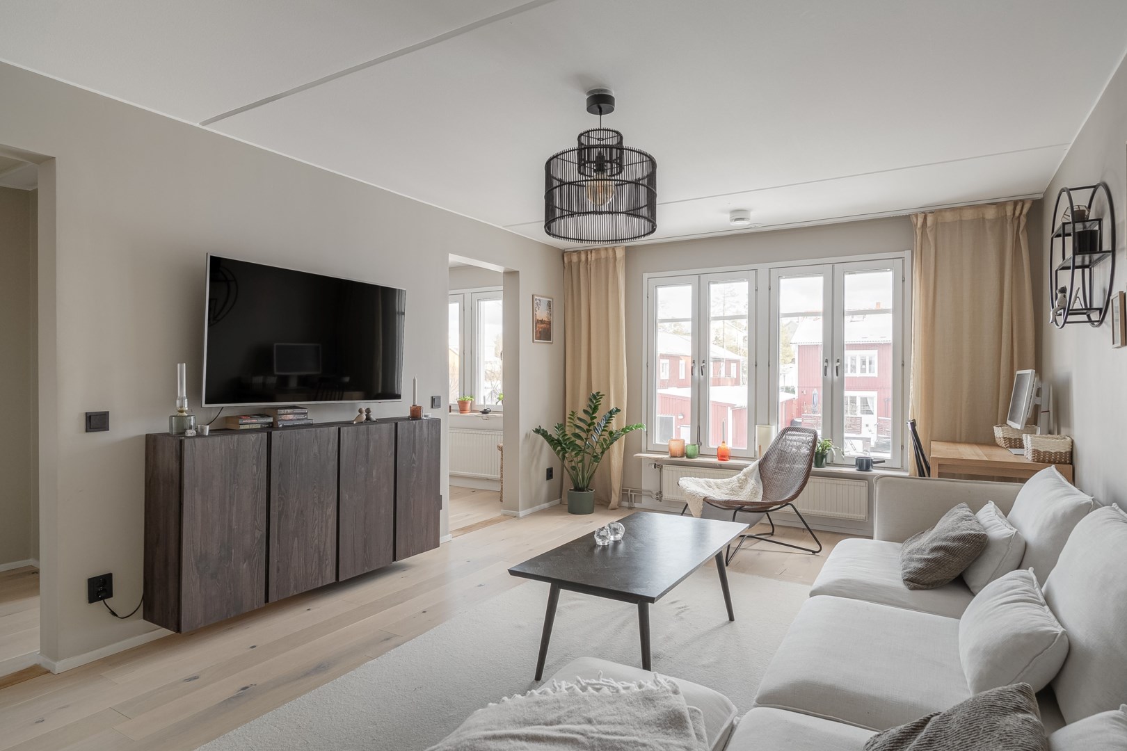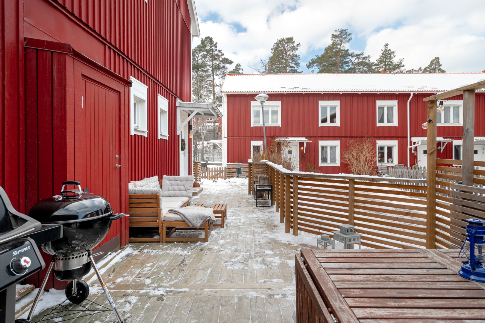 Inbjudande och välplanerad gavellägenhet med radhuskänsla i lugnt och barnvänligt område med bilfria gator. Lägenheten är i mycket fint skick eftersom den har totalrenoverats de senaste åren. Vid entrén finns ett stort trädäck med plats för utemöbler, grill och ingång till ett rymligt isolerat