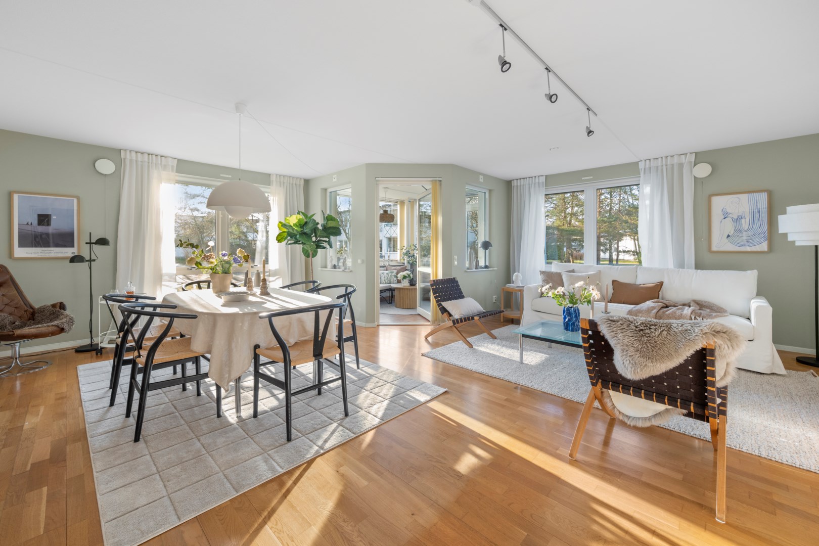 PÅ GRÖNSKANDE LÄGE MITT I FALSTERBO Nu ges ett sällsynt tillfälle att förvärva en av de större lägenheterna om generösa 110 kvm i populära Armeriahus som är ett omtyckt och tryggt 55+ boende. Lägenheten kan vid behov disponeras om till fyra rum enligt originalritningen, vilket ger stor
