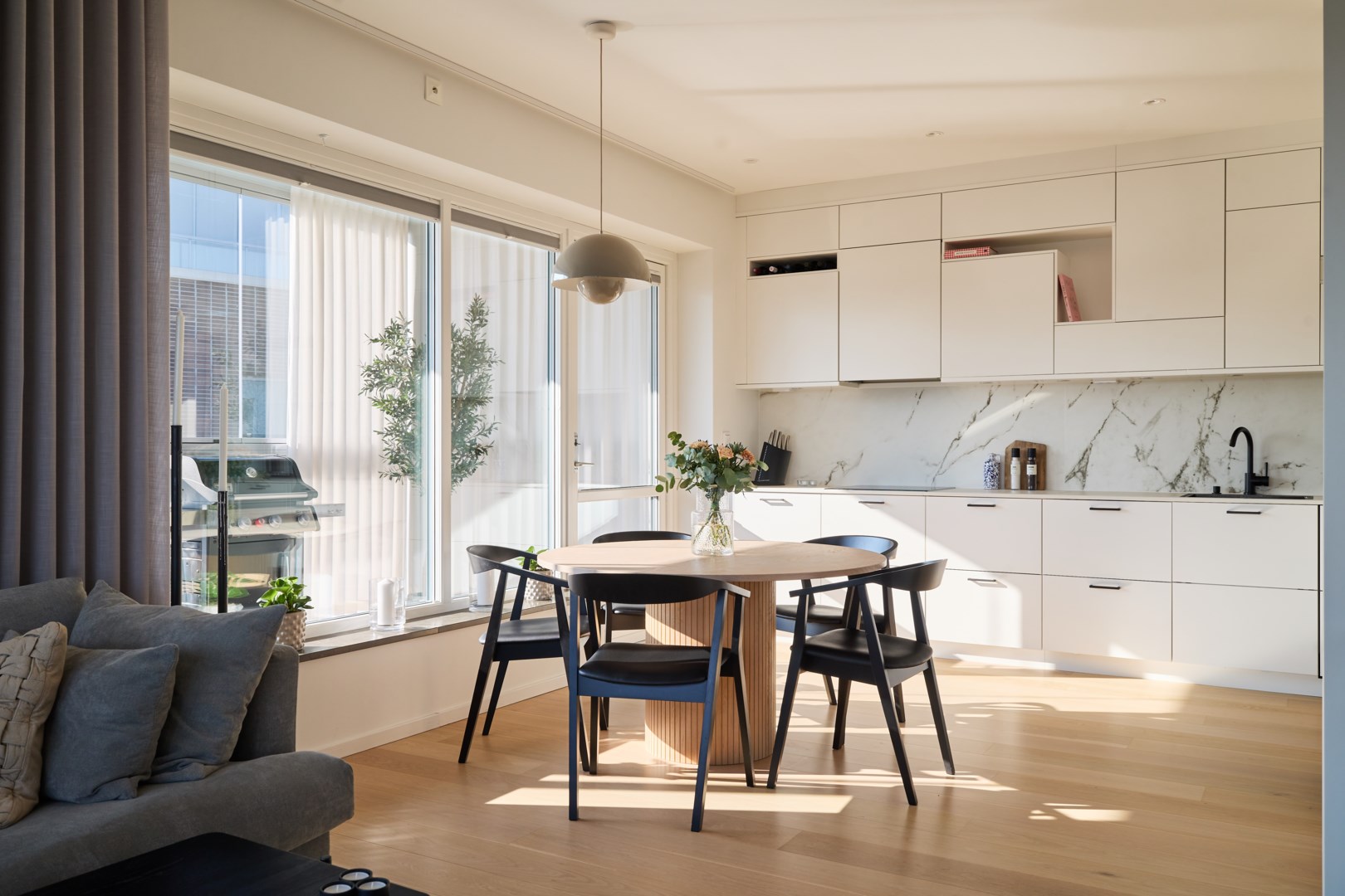 Välkommen hem till en ljus och välplanerad gaveltrea högst upp i huset. Hiss går direkt från garaget där du enkelt parkerar bilen, och för dig med elbil finns laddbox på plats. Här bor du med havet som granne och har härlig utsikt samt många soltimmar från den stora inglasade balkongen i vinkel, i
