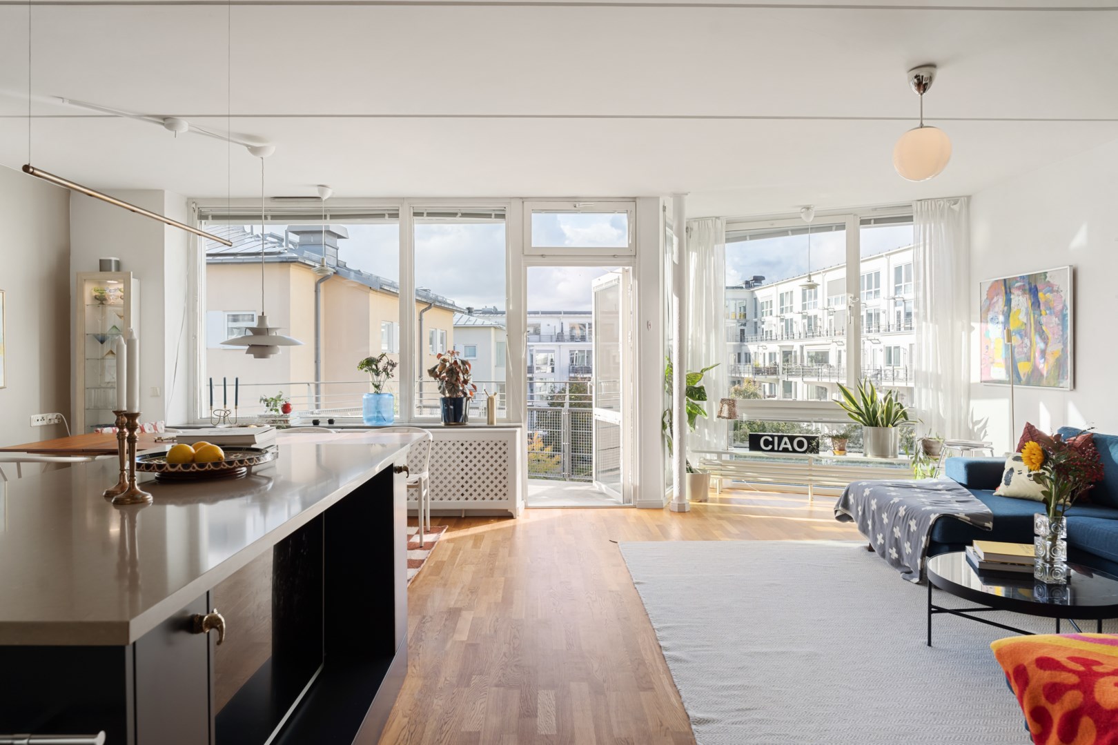 Välkommen till denna ljusa och luftiga 3:a med stor balkong i eftertraktat västerläge mot grönskande gård. Bostaden har en genomgående planlösning med fantastiskt ljusinsläpp genom generösa fönsterpartier samt vackert burspråk. Lägenheten är högt belägen i huset vilket ger en härlig himmelskontakt