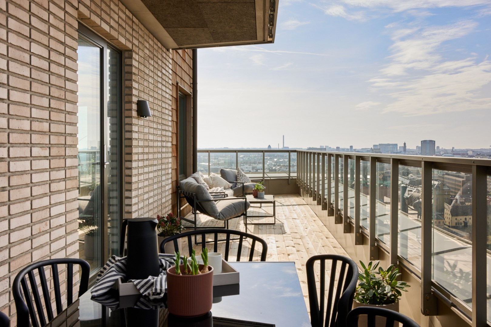 Högt ovan innerstaden väntar en spännande våning med hissnade vyer. När mörkret sänker sig ligger ett glittrande Malmö framför dig. Centralstationen ligger just runt hörnet och inglasade höghus varvas med nya moderna våningar - det känns faktiskt lite Manhattan i dessa kvarter. Högt upp i det