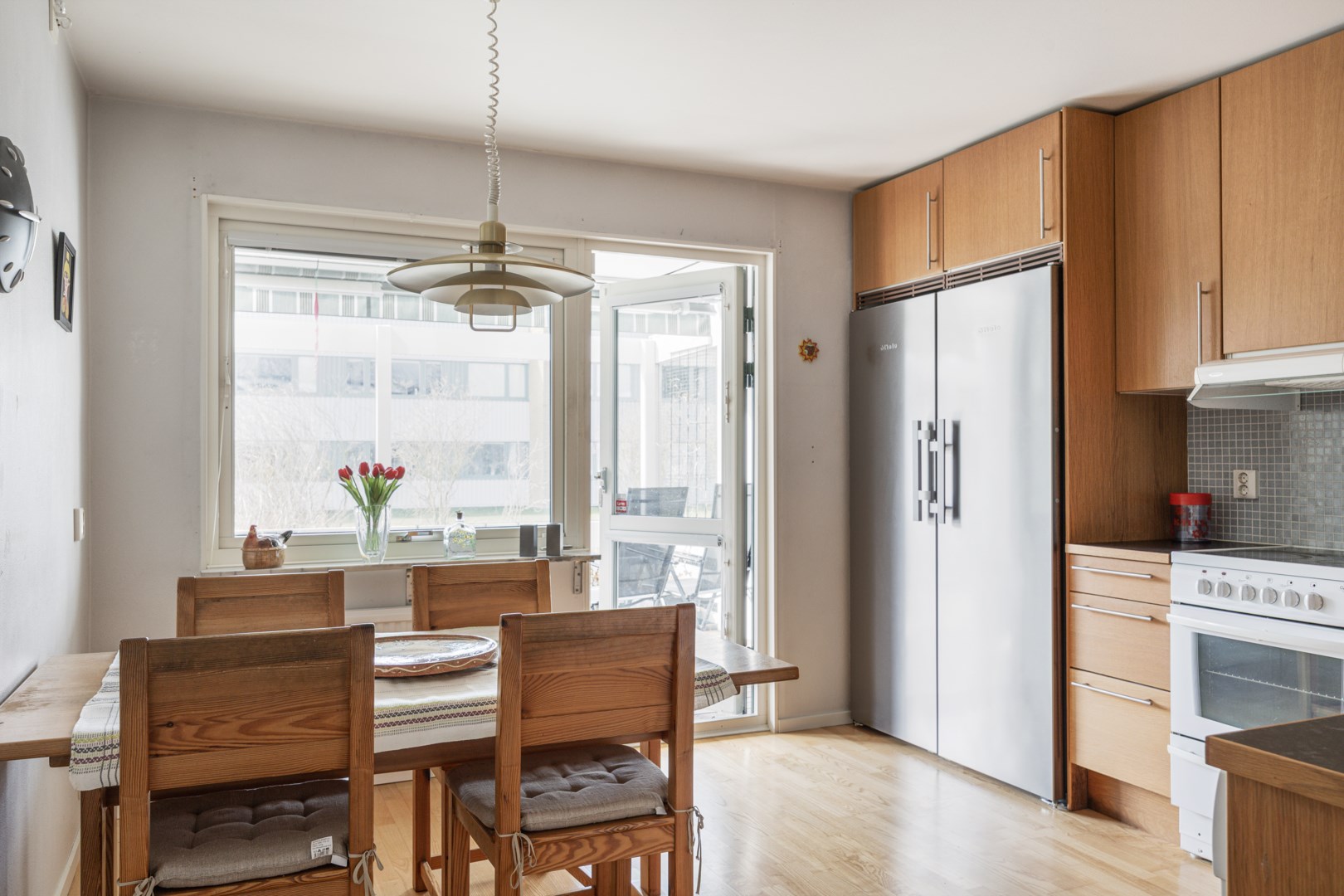 Mycket välplanerad och fräsch marklägenhet om 100 m² på ett av Bjerehovs bästa lägen. Rejäl uteplats i västerläge med trädäck. Allt i yppersta skick med helkaklat badrum och gästwc med dusch, båda med golvvärme. Rymligt kök med inredning i ek från Marbodal. Genomgående parkett och klinker. Öppen