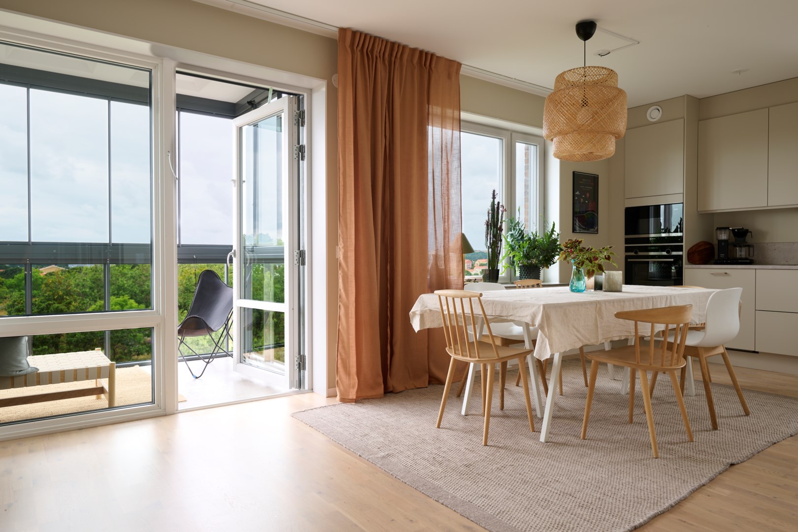Högt upp i huset har vi denna insynsskyddade fyra med en fantastisk inglasad balkong åt väst med sol från sen lunch tills den går ned. Välkommen till denna moderna och stilrena fyra belägen i ett nybyggt hus från 2023 i eftertraktade Eriksberg. 4 rum varav 3 sovrum Flertalet betalparkeringar