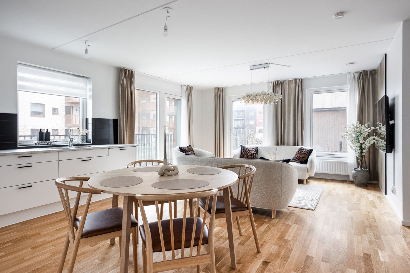 Välkommen till drömhemmet för dig och din familj – en fantastiskt välformad fyra-rumslägenhet där varje kvadratmeter är designad för att låta er växa och trivas. Med sin genomtänkta och öppna planlösning där det moderna köket och vardagsrummet är placerat i hjärtat av hemmet är denna bostad en sann