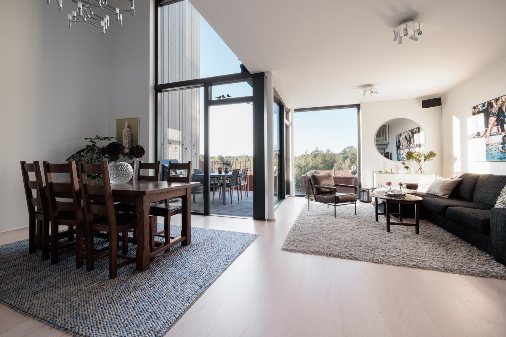 Välkommen till ett hem utöver det vanliga. Nu tillsaluförs denna stilfulla och välplanerade fyrarummare om 132 kvm i attraktiva Norra Djurgårdsstaden – en modern oas där natur och arkitektur samspelar på ett unikt sätt. Bostaden är belägen högst upp med hiss till våning tre, är fördelad över två