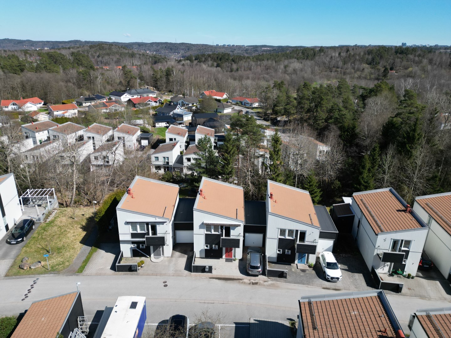 Här erbjuds ett modernt och välplanerat hem med ett av områdets kanske bästa lägen, helt utan insyn tack vare det fria läget med gästparkering framför huset och grönskande omgivning på baksidan. Entréplanet präglas av en öppen och social planlösning där kök och vardagsrum samspelar på ett naturligt