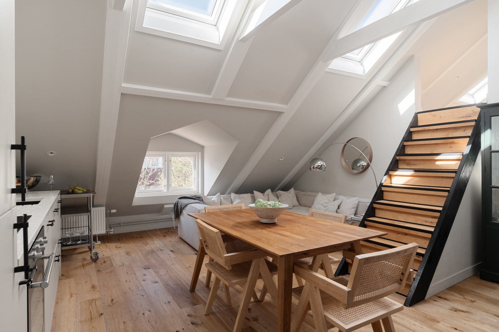 Fantastisk vindsvåning med en rymlig loft, toppmodern interiör och spännande planlösning! Föreningen godkänner fri andrahandsuthyrning! Med en totalyta om 108 kvm varav 59 kvm är boarea har bostaden en genomtänkt planlösning där varje kvadratmeter nyttjas till fullo. Denna ljusa bostad erbjuder