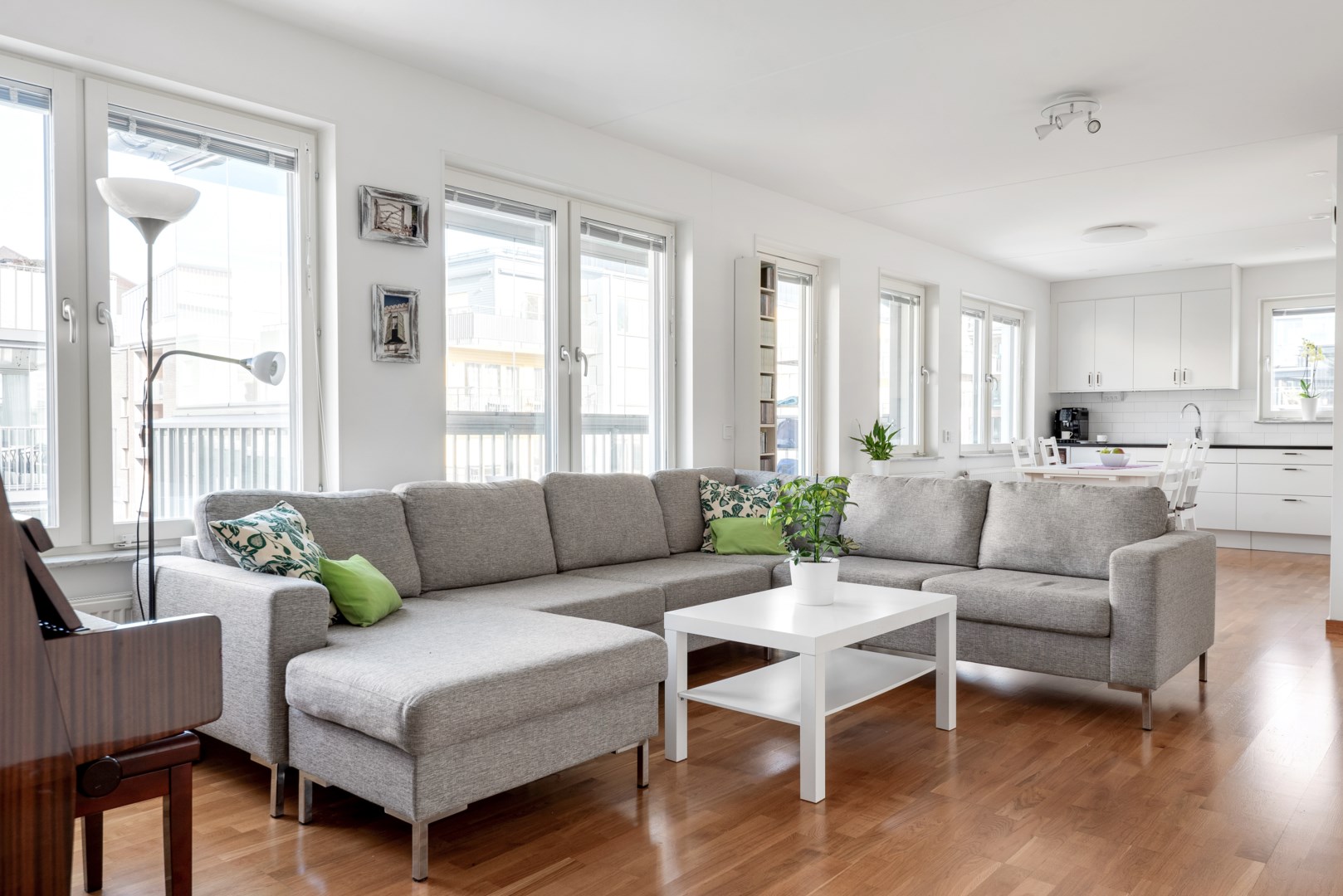Välkommen till en modern och trivsam bostad med öppna sällskapsytor och en planlösning som verkligen tar vara på ljuset. Kök och vardagsrum har hela sex ljusinsläpp åt två olika väderstreck vilket ger en väldigt härlig känsla för de sociala ytorna man vistas i mest! Lägenheten ligger högt upp i
