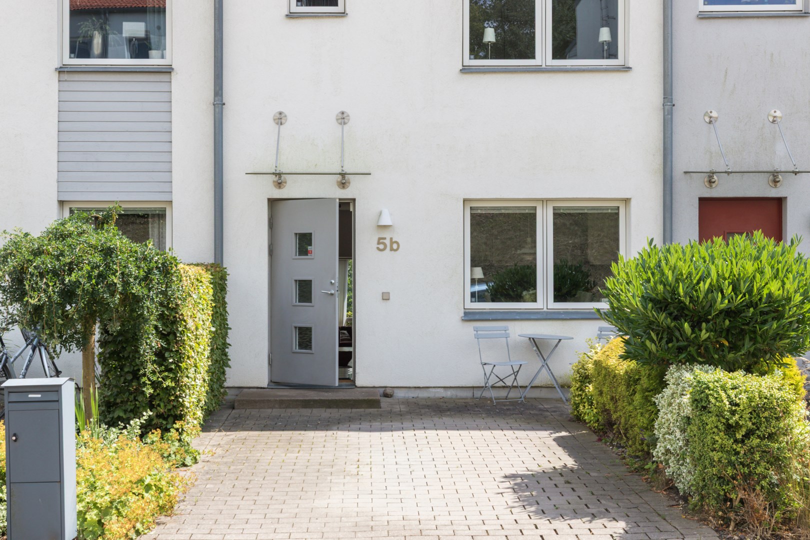 Populärt område vid det gamla vattentornet Högt läge med fantastisk utsikt i söderläge Terrass med plats för matbord och lounge Två hela våningsplan Egna tvättmöjligheter Två helkaklade badrum Ljust vardagsrum med utgång till uteplats Kök med plats för matbord Smakfullt med vita väggar och