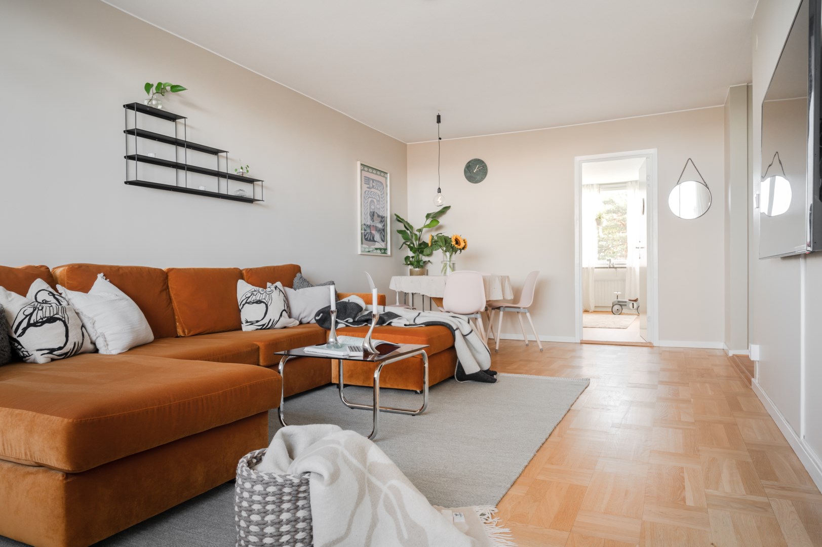 Välkomna till denna mycket välplanerade familjebostad om hela 109,3 kvm fördelade på fyra rum och kök, ett badrum, en gäst-Wc samt en tvättstuga. Vardagsrummet är väl tilltaget och ger gott om plats för större soffgrupp framför mediabänken samt övrig trivselmöbel om så önskas. Vardagsrummet har ett