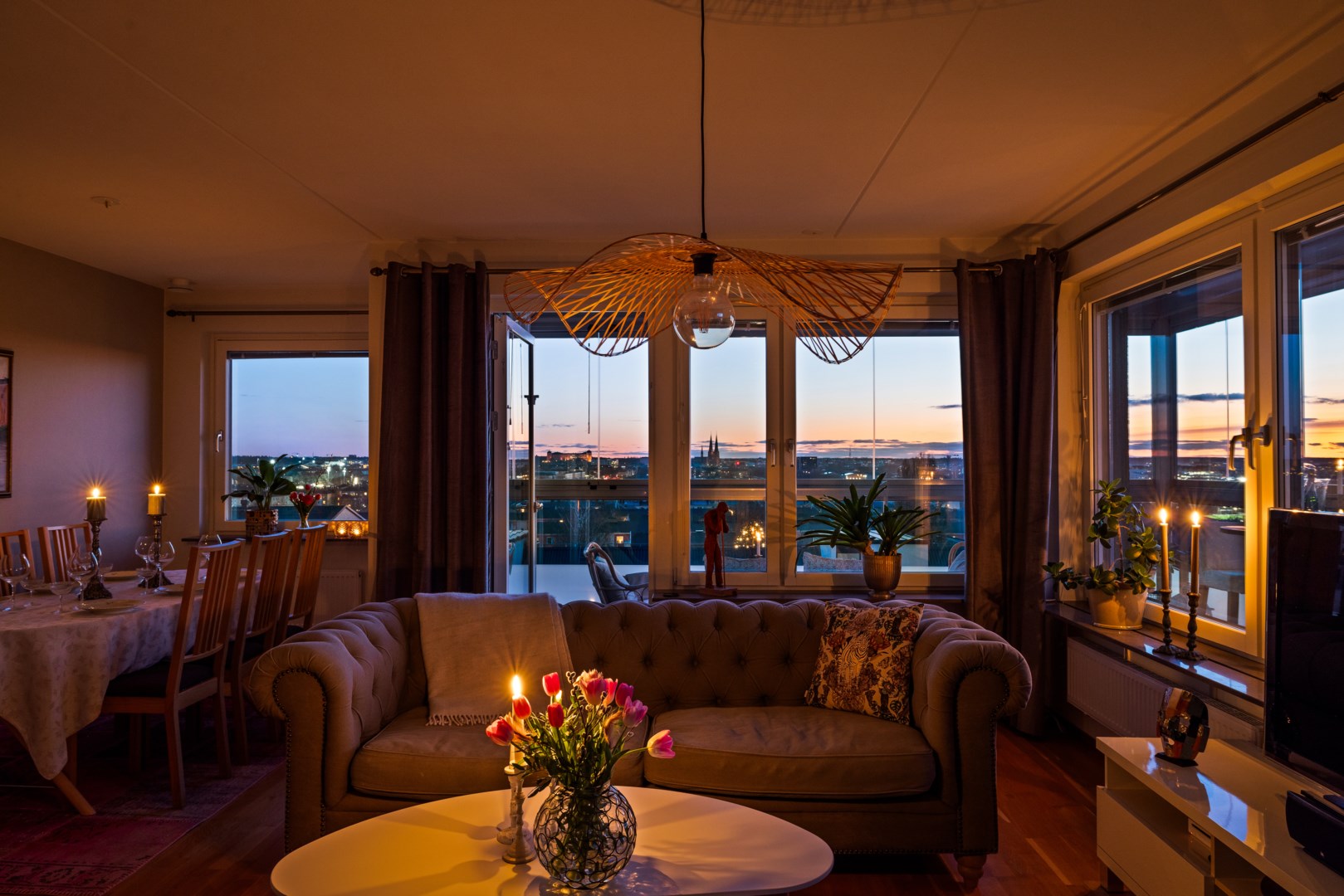 Högt över Uppsala, i attraktiva Gränby Backe, finner du denna enastående takvåning om ca 120 kvm – en bostad där elegans möter komfort i en perfekt harmoni. Här får du en utsikt som imponerar varje dag, med panoramavy över stadens ikoniska landmärken: Domkyrkans majestätiska spiror, det historiska