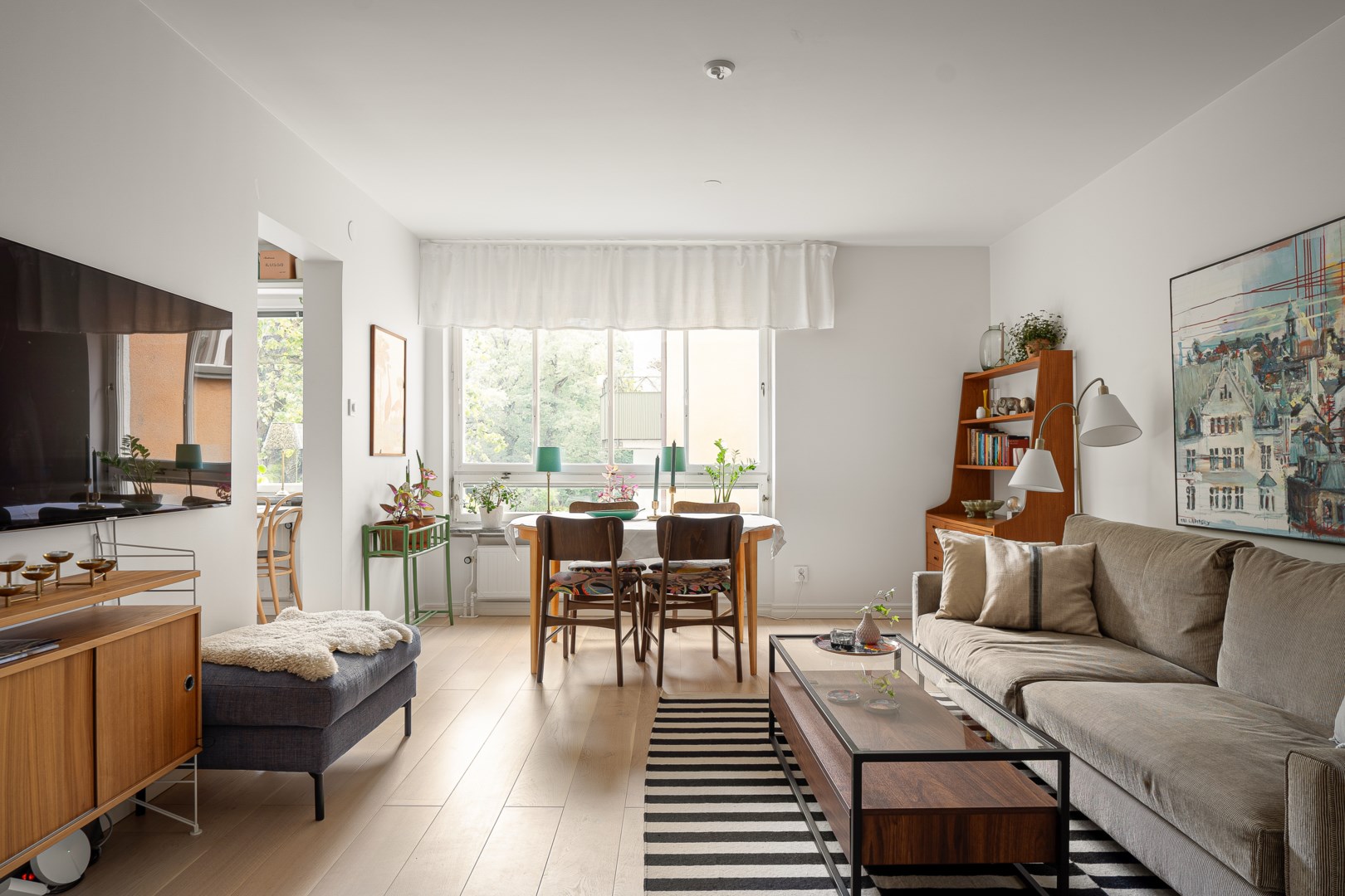 Trivsam balkong Öppen spis Gavelläge Ljusa & fräscha ytskikt Badrum & gäst-wc Egna tvättmöjligheter Tvättmaskin i lägenhet Mycket bra förening Goda kommunikationer Hiss finns i fastigheten Två förråd i källaren Goda kommunikationer Mall of Scandinavia Nära natursköna omgivningar