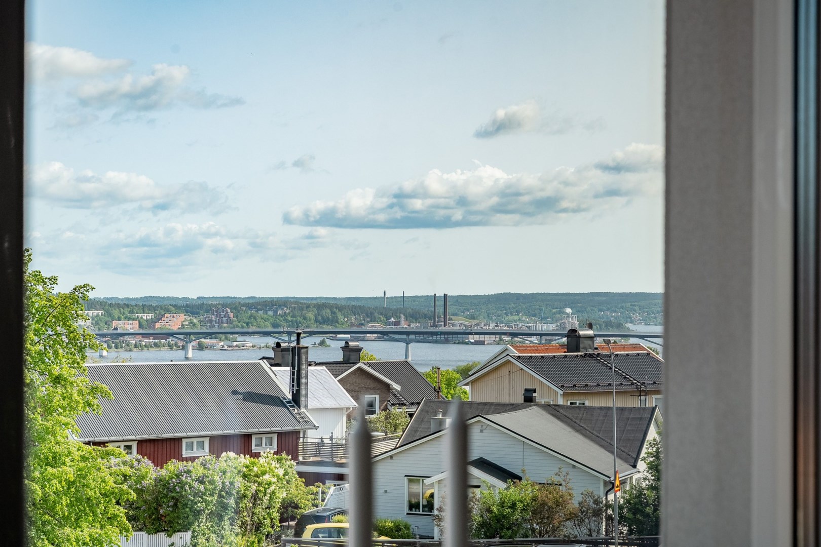Välkommen till denna trivsamma och välplanerade fyrarummare om hela 106 kvm – belägen högst upp i huset men ändå bara en trappa upp! Här bor du med utsikt över det glittrande hamninloppet och den mäktiga Sundsvallsbron – förmodligen det allra bästa läget i hela Brf Tvingen. Lägenheten har en