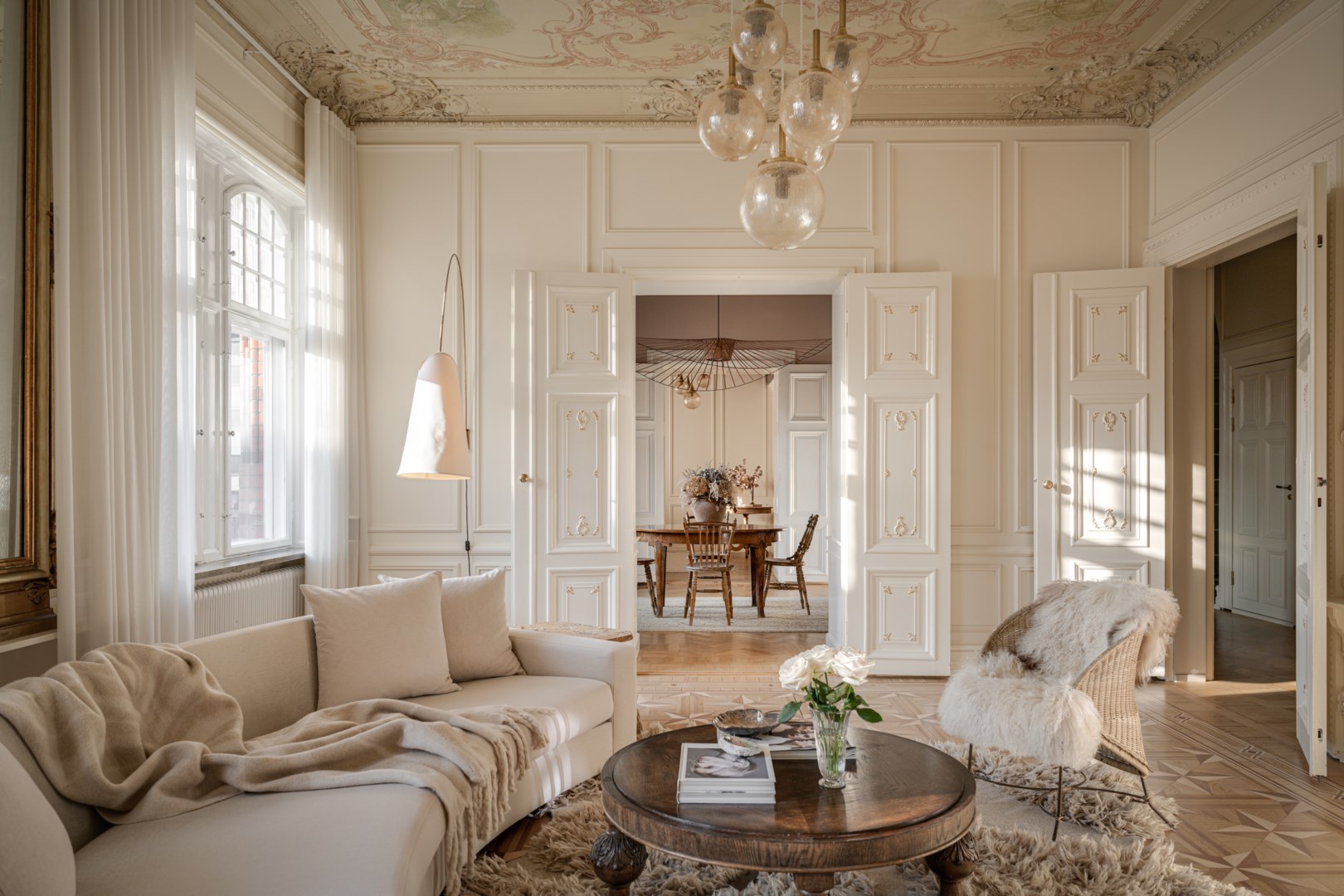 Gatlyktornas gyllene sken glittrar under en klar hösthimmel. Rader av gathus i en färgglad palett radar upp sig utanför djupa bågformade fönster. Inne i lägenheten på andra våningen är stämningen hög. Högklackade slingbacks och polerade skor rör sig genom salongerna medan grammofonspelaren spelar