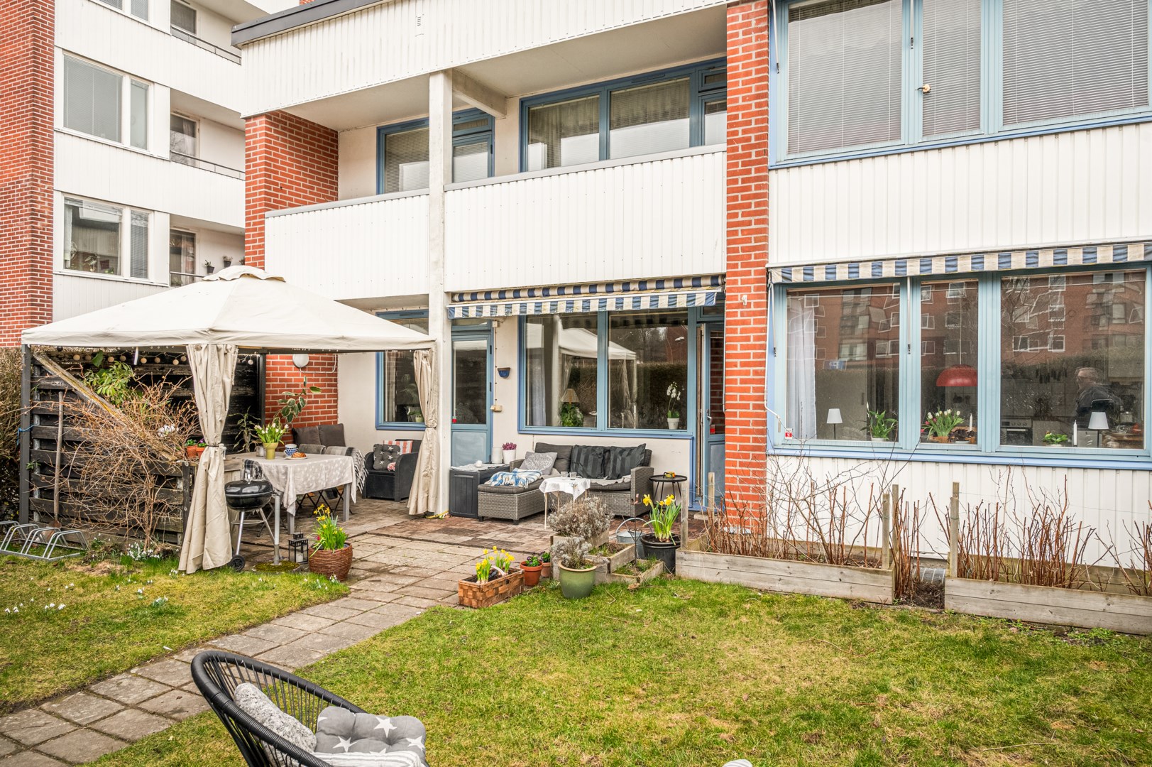 Sällsynt tillfälle att förvärva en av Klostergårdens mest eftertraktade markplansfyror med en utpräglad känsla av ett eget hus. Bostaden om 94 kvadratmeter präglas av en social planlösning där det ljusa köket och vardagsrummet utgör hjärtat i hemmet. Köket är både stilrent och funktionellt,