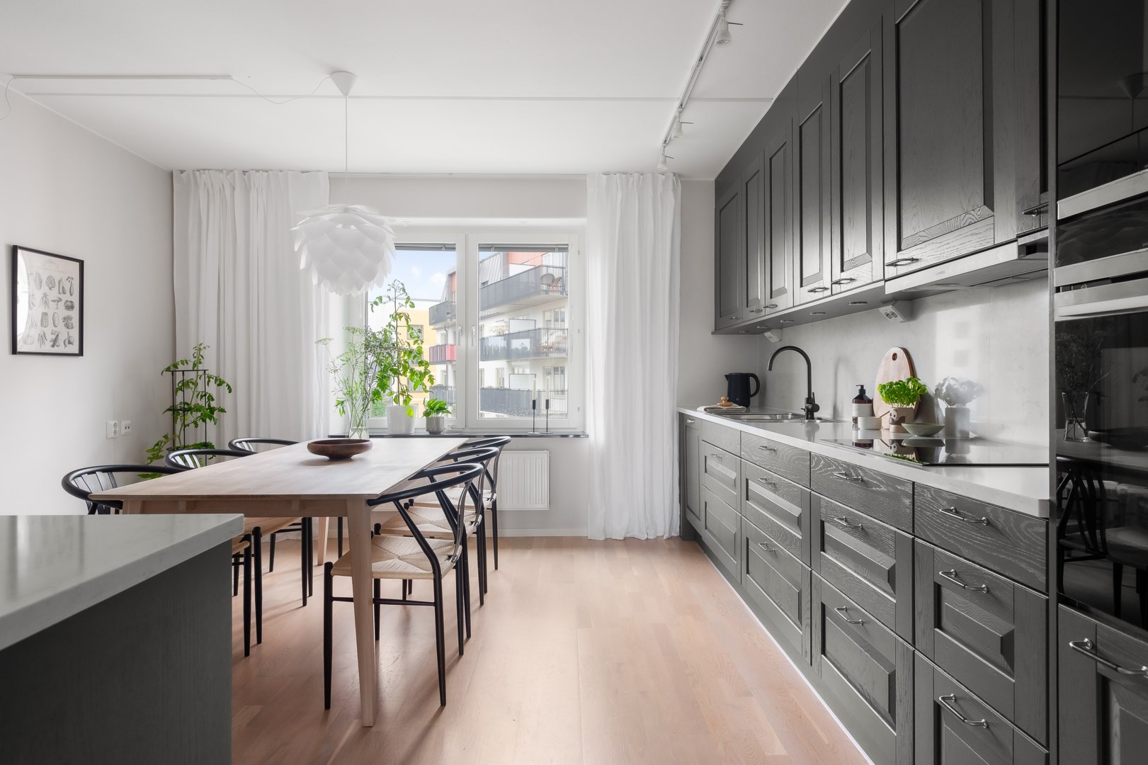 Nu saluförs områdets bäst planerade 4:a, högt upp i huset med stilsäker design och en generöst tilltagen balkong i fritt läge! Varenda kvadratcentimeter är väl genomtänkt vilket gör denna planlösning svårslagen! På 99,5 kvm erbjuds ett kvalitetskök i elegant utformning och bänkskiva i