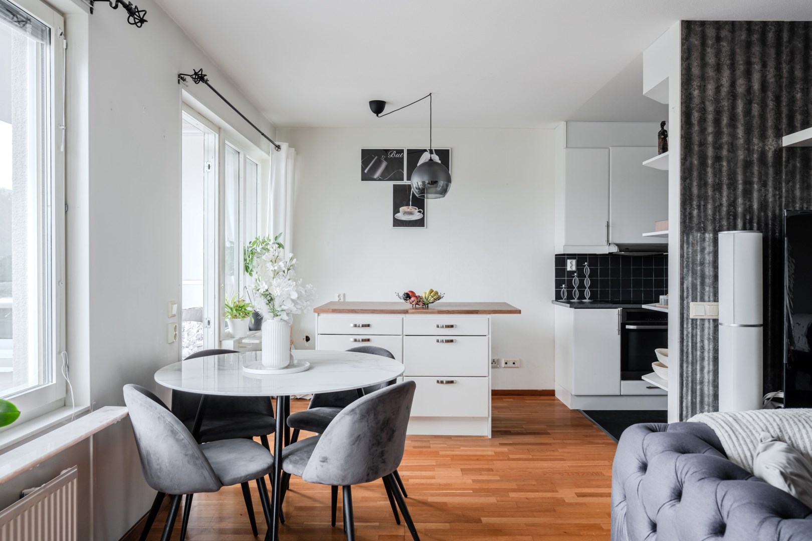 Välkommen till denna välplanerade lägenhet med inglasad balkong som vetter i västläge med eftermiddag- och kvällssol. Bostaden ligger på tredje våningen i fastighet med hiss från markplan med gott i ljusinsläpp tack vare gavelläget. Planlösningen fördelar sig på hall med avhängningsytor,