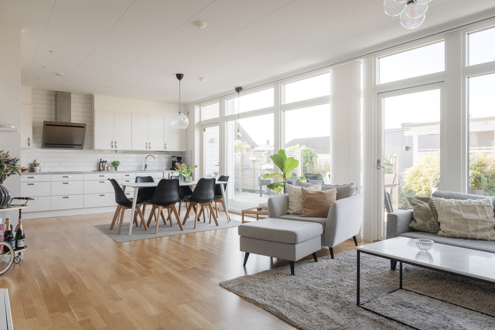Ljusa & luftiga sällskapsytor Generöst ljusinsläpp Bekvämt boende Genomgående ekparkett Kvalitativt Vedumkök Dubbla badrum Trädäck med många soltimmar Separat tvättstuga med entré Rymliga förråd Carport & uppfart Promenadavstånd till havet Flera lekplatser i området Kort promenad till badstrand Bussar till centrum