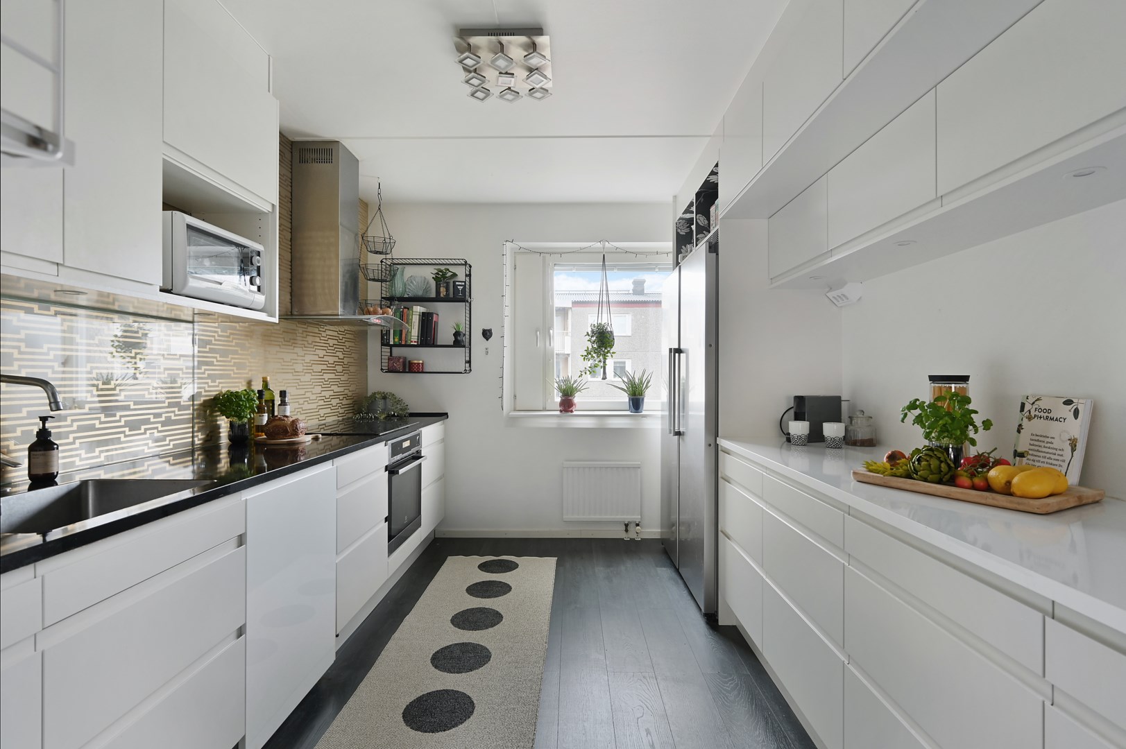 Det här är en lägenhet att gilla. Och det är inte så konstigt; här bjuds på välplanerade och lättmöblerade ytor med ett härligt ljusinsläpp. Här bor ni mitt emellan två underbara naturreservat. Det ena intill glittrande Mälaren och det andra med lugn, rogivande natur där den hetsiga stadspulsen
