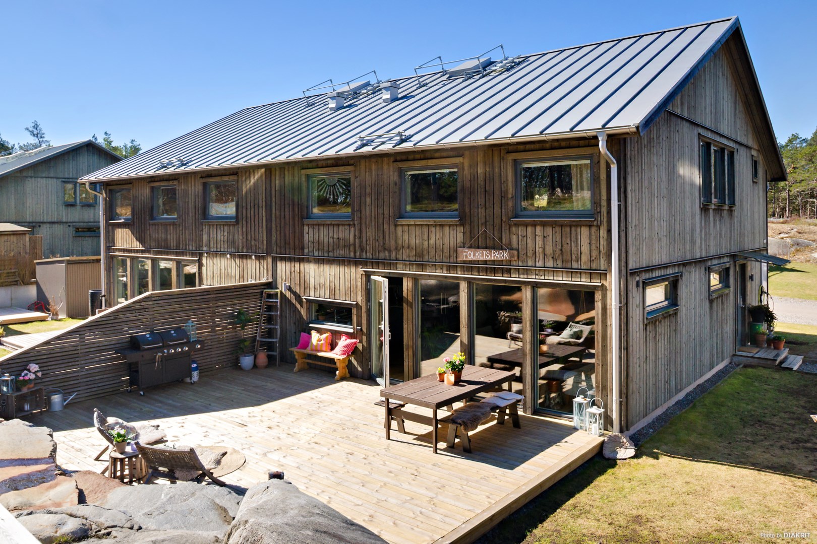 I vacker natur och med skärgården in på knuten ligger detta moderna, familjevänliga och energieffektiva parhus från Trivselhus med genomtänkta lösningar, stora glaspartier med utgång till stor vacker trädgård med omkringliggande skärgårdsnatur. Huset är i modern skandinavisk stil med träfasad i furu