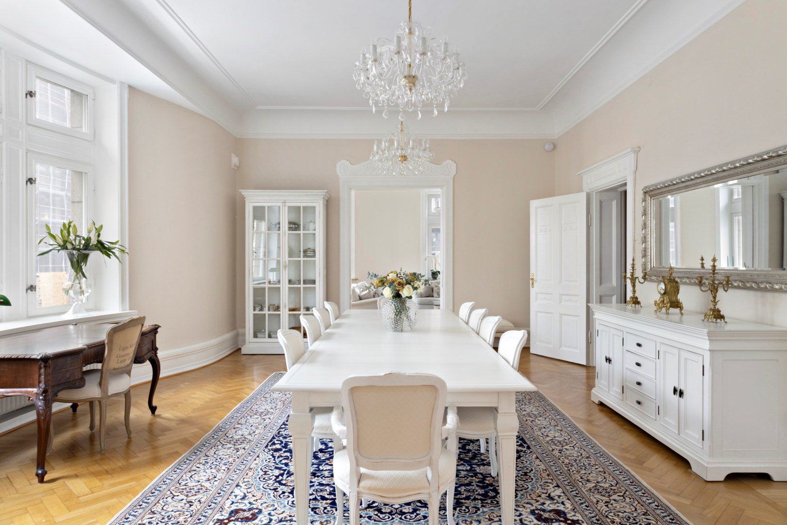 Nu erbjuds en sällsynt möjlighet att förvärva en representativ paradvåning om 265 kvm i ett av Malmös mest anrika byggnad. Med sitt höga läge på andra våningen, sina magnifika sällskapsytor, sju rum och en planlösning som rymmer såväl ett storslaget umgängesliv som ett bekvämt familjeboende, är