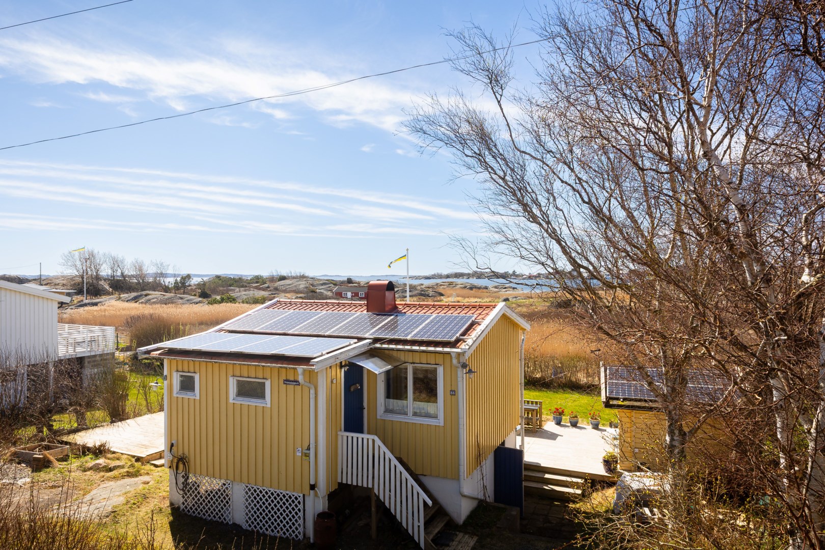 Välkommen till Torslanda Havsbadskoloni – en plats där havet alltid är närvarande, där vinden sveper in och där livet får ta ett lugnare, mjukare tempo. Här, i ett av områdets mest eftertraktade lägen, ligger denna omsorgsfullt omhändertagna stuga med fri sikt. Inga hus framför – bara himmel, hav