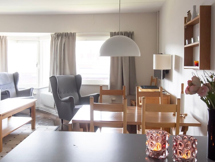 Andel av bostadsrätt Brf.Högfjället SÄLEN. 70 kvm. 6 bäddar. Våningen är renoverad. Fräscht och rymligt med hög standard. Bytesdag är söndagar. Nya ytskikt, nya köksluckor och garderobsdörrar, ny arbetsbänk, nytt kakel i kök, ny matta i sovrum, nya fåtöljer och soffa, nytt torkskåp, köksfläkt,