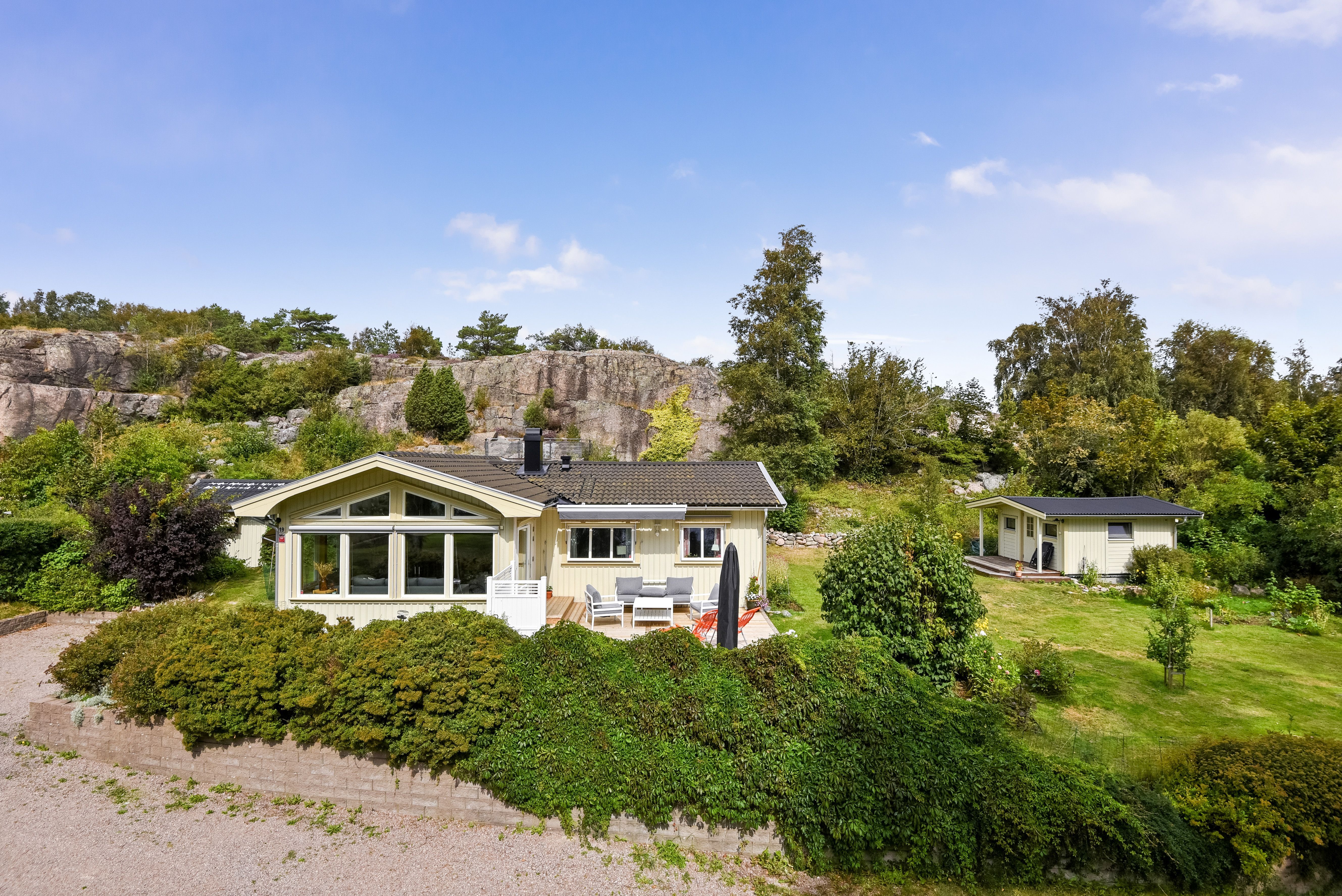 I natursköna Långsjö beläget mellan Fjällbacka och Grebbestad förmedlar vi nu Långesjö Russekärr 19 och denna härliga sommaridyll! Fastigheten har en 1 228 m2 stor tomt med privat och insynsskyddad innergård med bästa solförhållanden, här får man härliga gräsytor som bjuder in till uteaktivitet