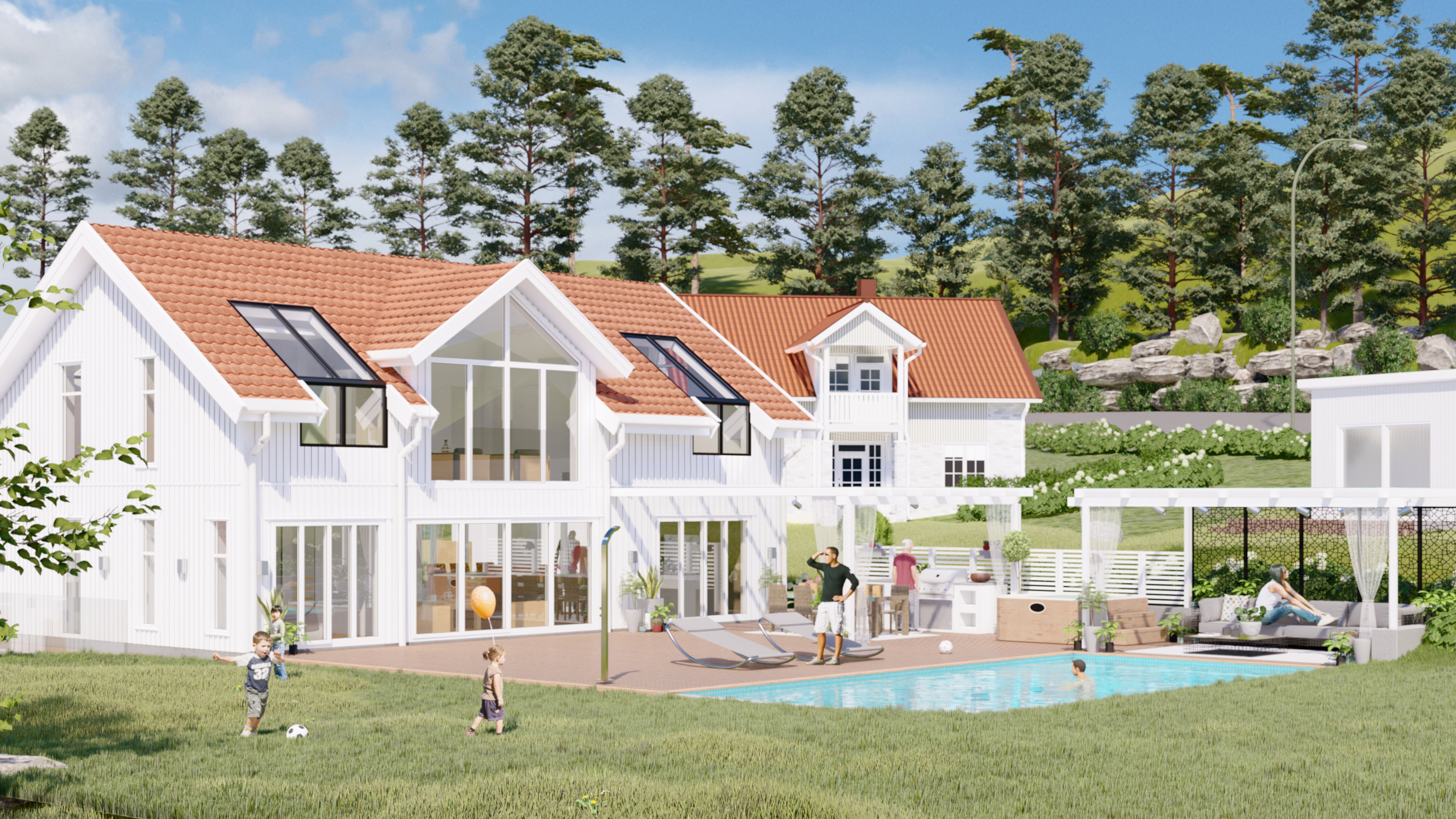 På populära Hamburgö tas inom kort det första spadtaget för denna högklassiga fastighet där varenda detalj givits omtanke och kvalitét. Bostaden är uppdelad på två våningsplan. Entréplan är väl genomtänkt och gemensamhetsytor för samvaro känns helt självklara och tack vare de generösa