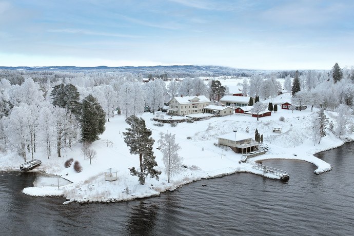 En imponerande sjötomt om 2,5 ha vid Fryken som inkluderar en herrgård från sent 1800-tal, en fristående villa och flera exklusiva faciliteter som strandvilla, poolhus och tennisplan. Fastigheten har även en sandstrand, ångbåtsbrygga och en flytande flotte. Tekniska lösningar som solcellspark och