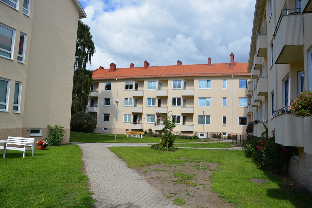 1 rok i centrala Karlshamn. Hall på våningsplan 1. Golv: plastmatta. Väggar: vitmålade. Säkerhetsdorr: ja med digitallås och tittöga (2015). Kök på våningsplan 1. Golv: plastmatta. Väggar: vitmålade. Köksluckor: målade träluckor. Bänkhöjd: 80 cm. Utrustning: spis, fläkt frånluft, fläkt