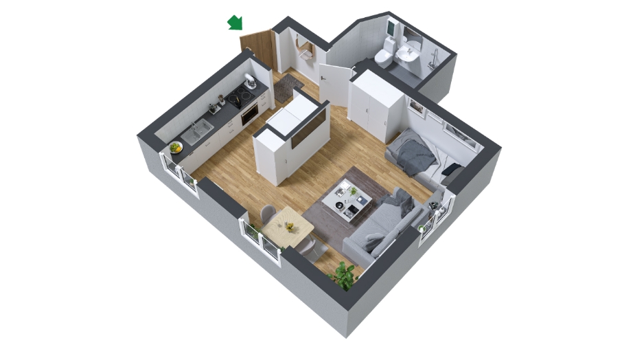 Nyrenoverad lägenhet i absolut toppskick. Utrustad med diskmaskin, kyl/frys, spis med häll och spisfläkt. Vitmålade väggar och stilfullt parkettgolv i ek. Duschrummet har vitt kakel på väggarna och grått klinkergolv. Ingår grundutbud av TV-kanaler och möjlighet finns att köpa bredband, tv och telefoni via vårt multimedianät.