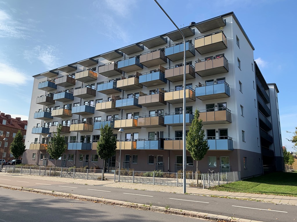 21 parkeringsplatser. P-plats går att hyra för 600 kr/mån.