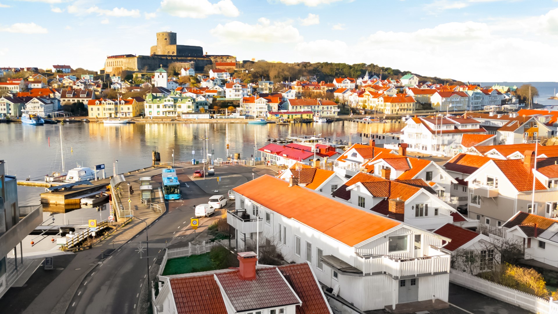 Precis intill färjeläget till Marstrand ligger denna unika fastighet med ett oslagbart läge – där havet, båtlivet och Marstrands historiska siluett blir en självklar del av vardagen. Från huset har du fri utsikt mot den ikoniska Carlstens fästning och ständigt närvarande