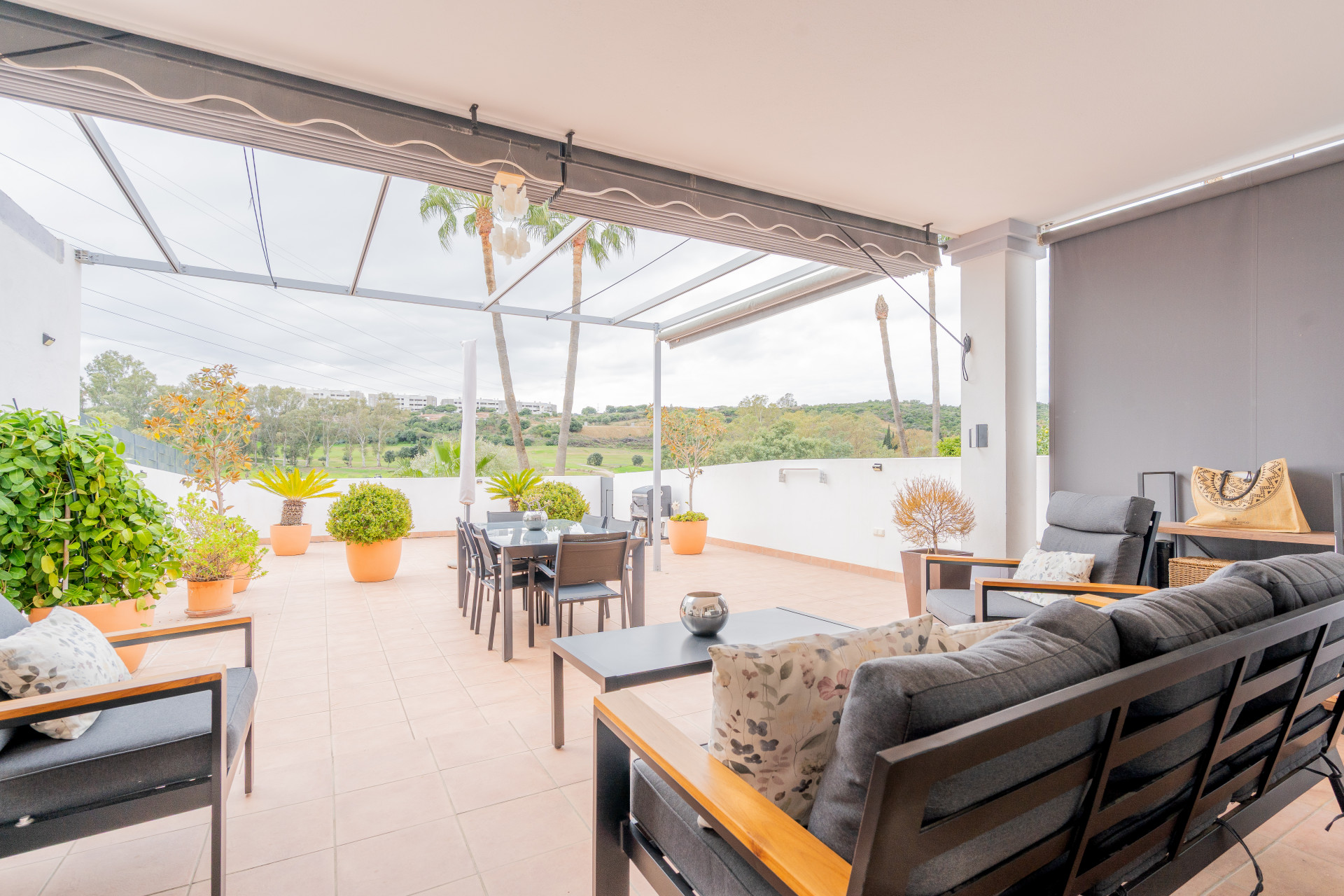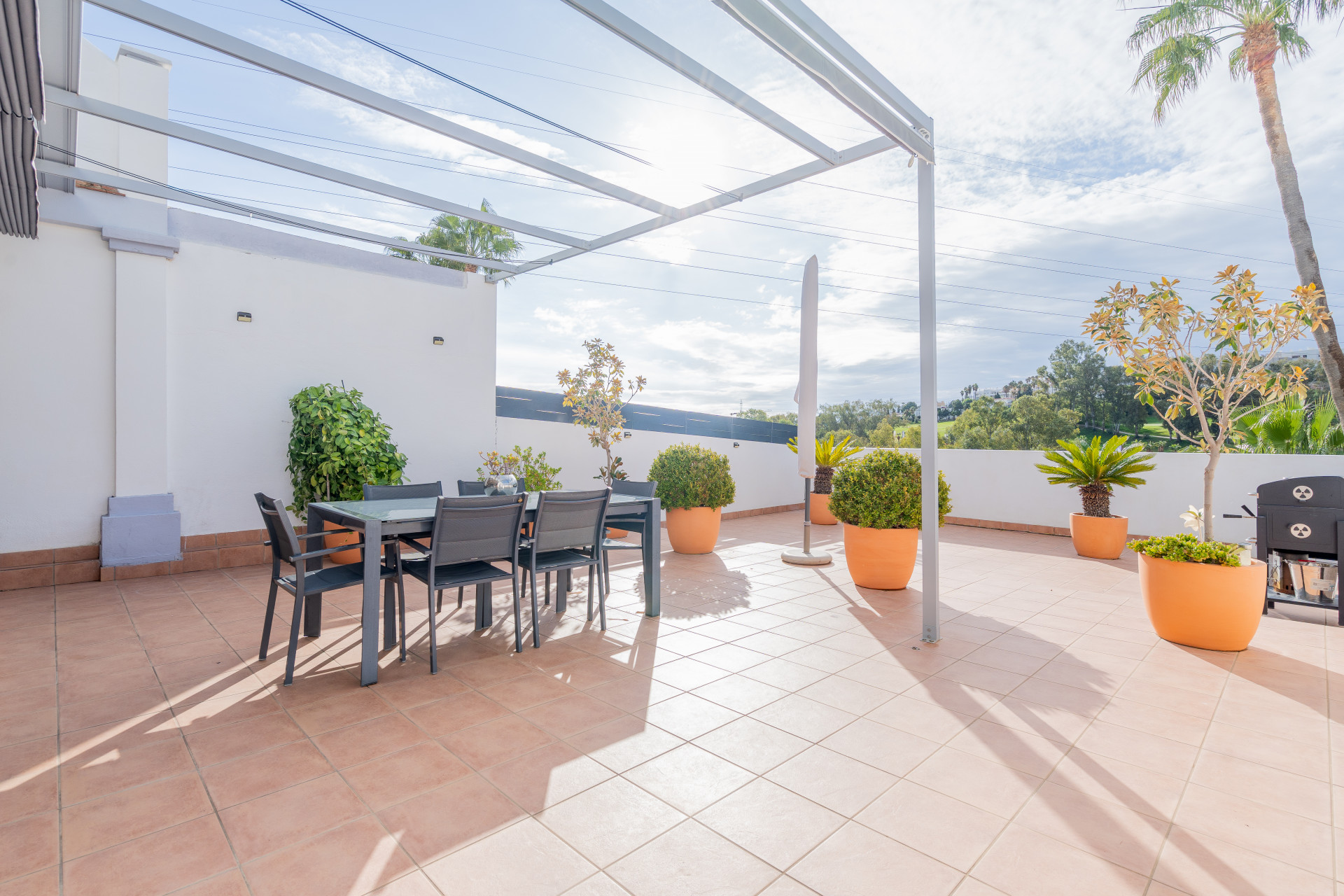 Detta hörn radhus ligger i den exklusiva Estepona Golf området, i den västra delen av Estepona, Malaga. Det står ut för sin privilegierade plats på framkanten av golf, som erbjuder direkt utsikt till landsbygden och sidvisningar till havet. Dessutom ligger det några minuters bilresa från Estepona