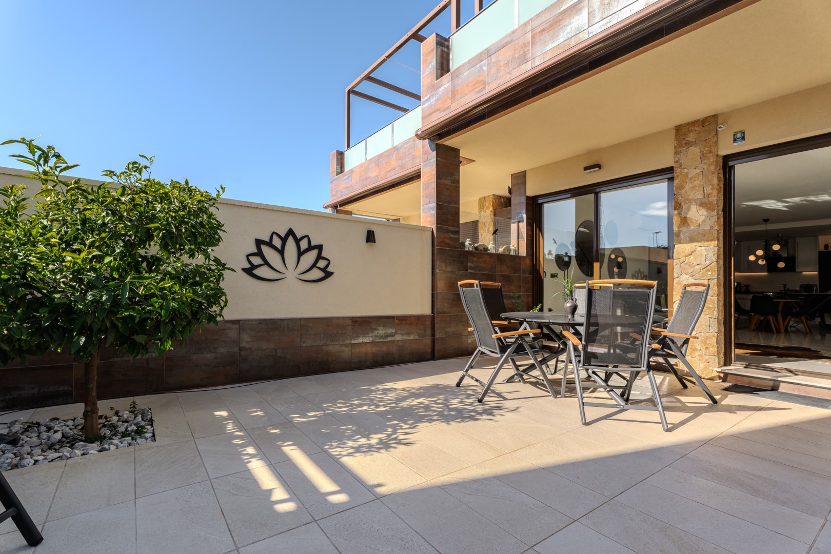 Välkommen till detta eleganta hem i Torre de la Horadada, endast 400 meter från Medelhavet. Beläget i ett lugnt men centralt område har du butiker, caféer, gym och stormarknader inom gångavstånd, medan golfbanor och shopping i området endast är en kort bilresa bort. Fastigheten erbjuder ett ljust