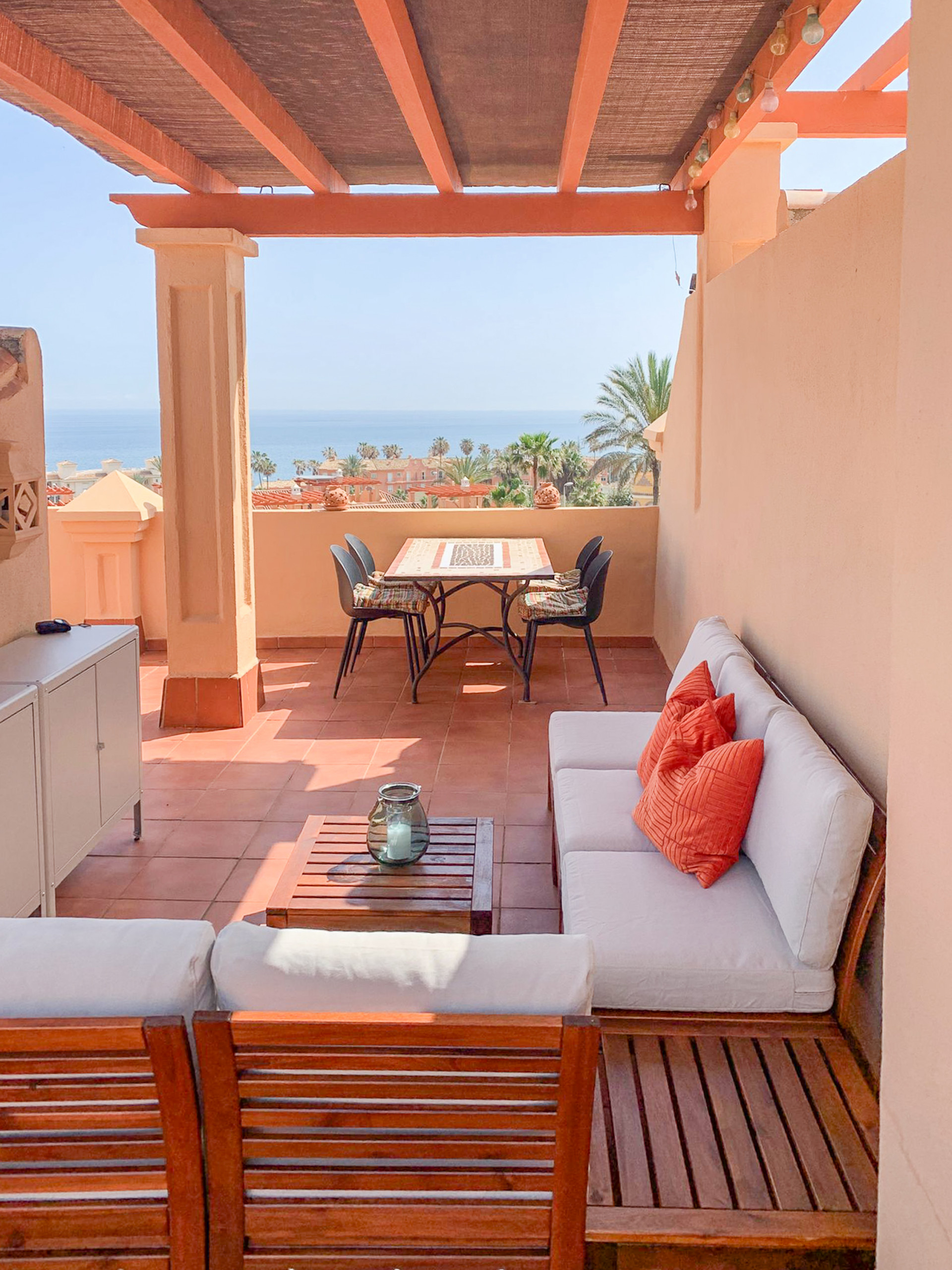 Fantastiskt radhus (söder-läge) endast 200 meter från stranden och den vackra strandpromenaden, nära butiker, restauranger och internationell skola. Bostaden är fördelad på två våningar samt en takterrass (solarium) och erbjuder ett ljust vardagsrum med direkt utgång till privat trädgård och