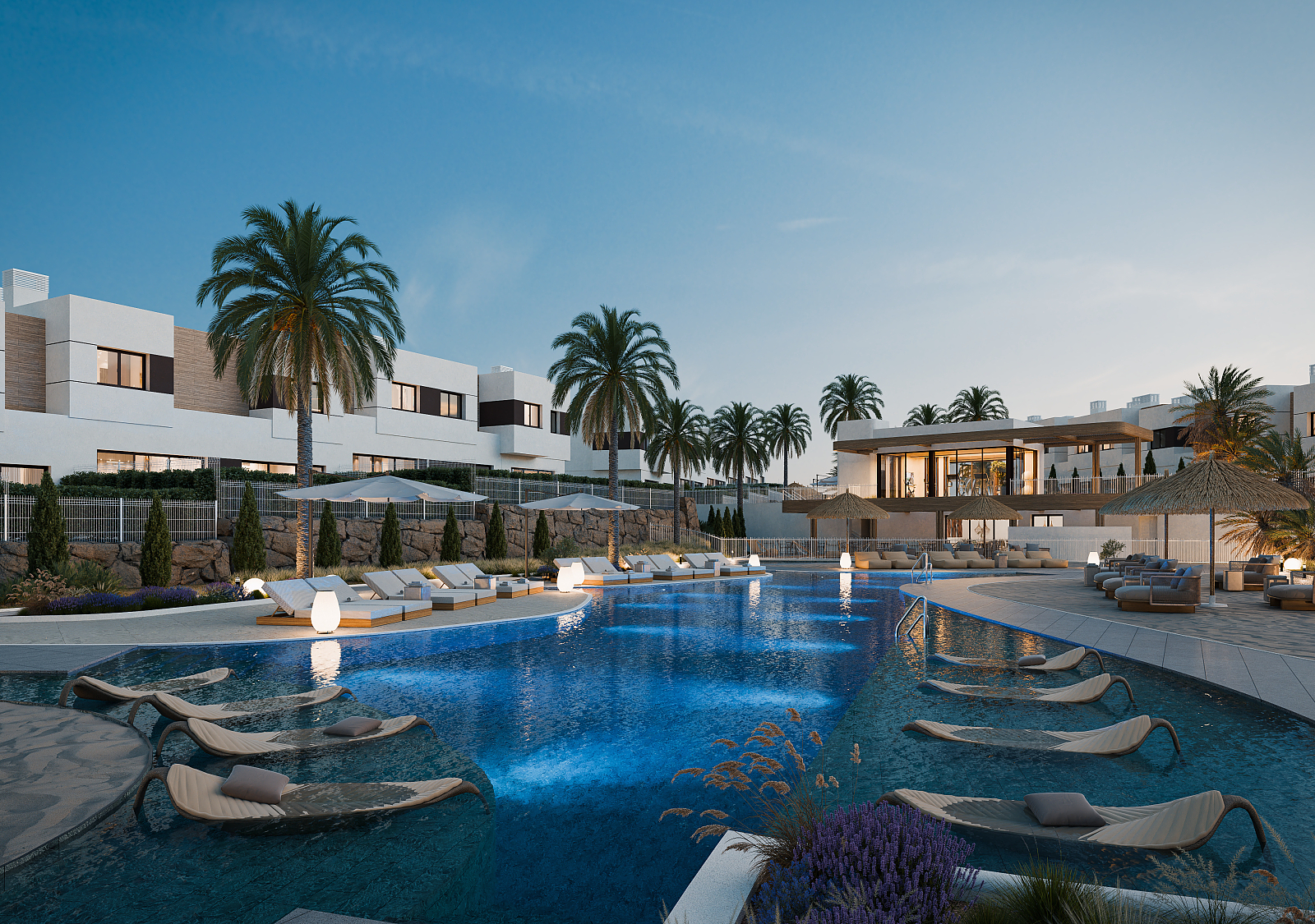 Nybyggda radhus på golfsidan med ett stort värde för pengarna i Mijas Denna nya utveckling ligger i kommunen Mijas, en av de vackraste och mest pittoreska kommunerna på Costa del Sol. Det erbjuder hög livskvalitet med behagligt väder hela året, en samling närliggande stränder och golfbanor, en