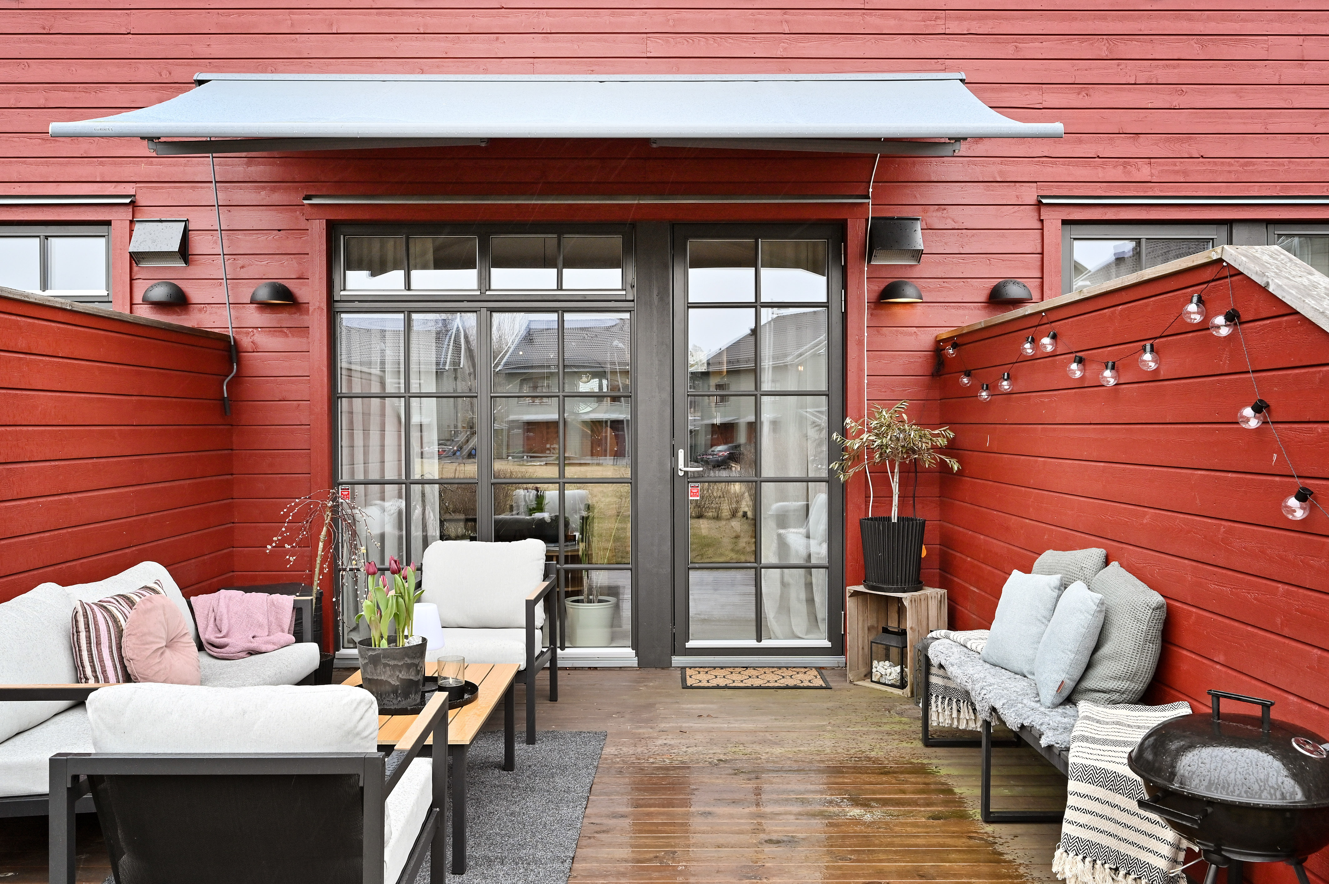 Modernt och påkostat radhus i tre plan med attraktivt läge i Torsby på Värmdö. Här erbjuds en trivsam trädgårdstäppa och en härlig altan i bästa kvällssol – perfekt för avkoppling och sociala stunder. Bostaden präglas av fina materialval, generös takhöjd och vackra spröjsade fönster som skapar ett