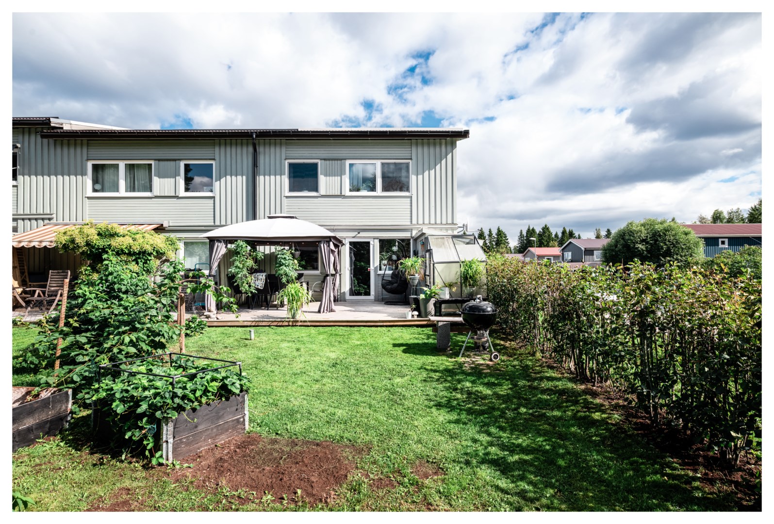 Kontakta mäklare för visningstid! Välkommen till ett rymligt gavelradhus i två plan med balkong på övre plan och mysig grönskande uteplats, beläget i ett lugnt och trivsamt kvarter i Holmsund. Här erbjuds gott om utrymme för familjen, med flera sovrum, sociala ytor och bra