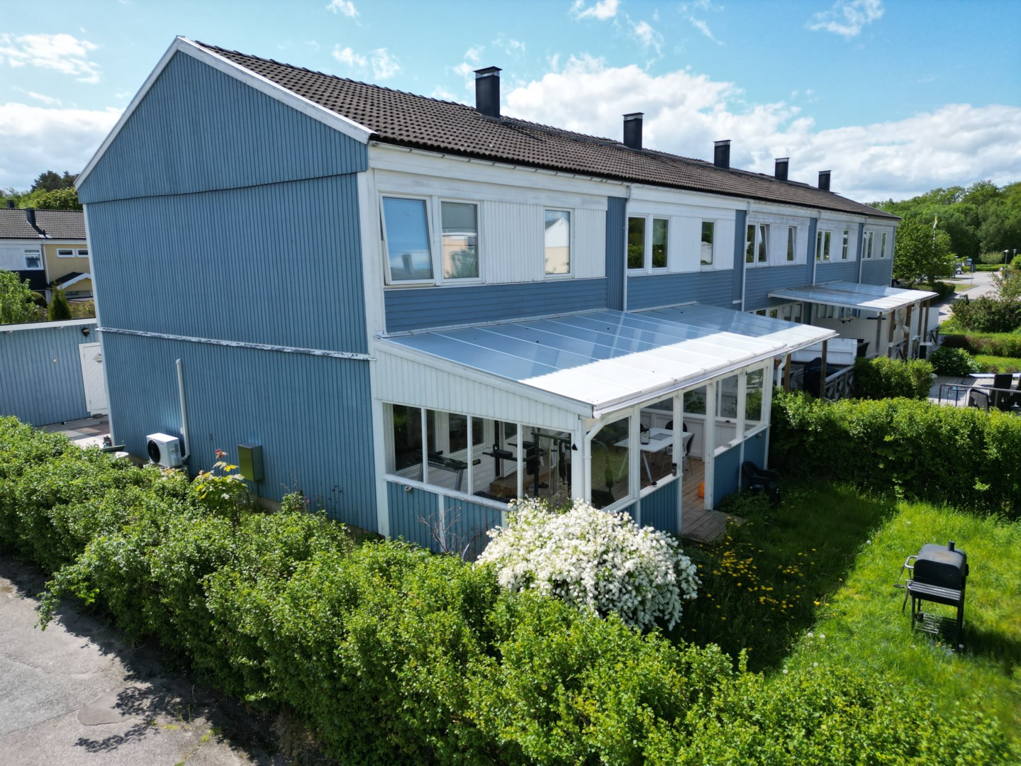 Välkommen till detta smakfullt renoverade och utbyggda gavelradhus på totalt 144 kvm, beläget i ett eftertraktat och barnvänligt område. Här erbjuds en friköpt tomt med en rymlig trädäckad altan under tak. 5 rum varav 3-4 sovrum I närheten har du fina promenadstråk och strandpromenader vid