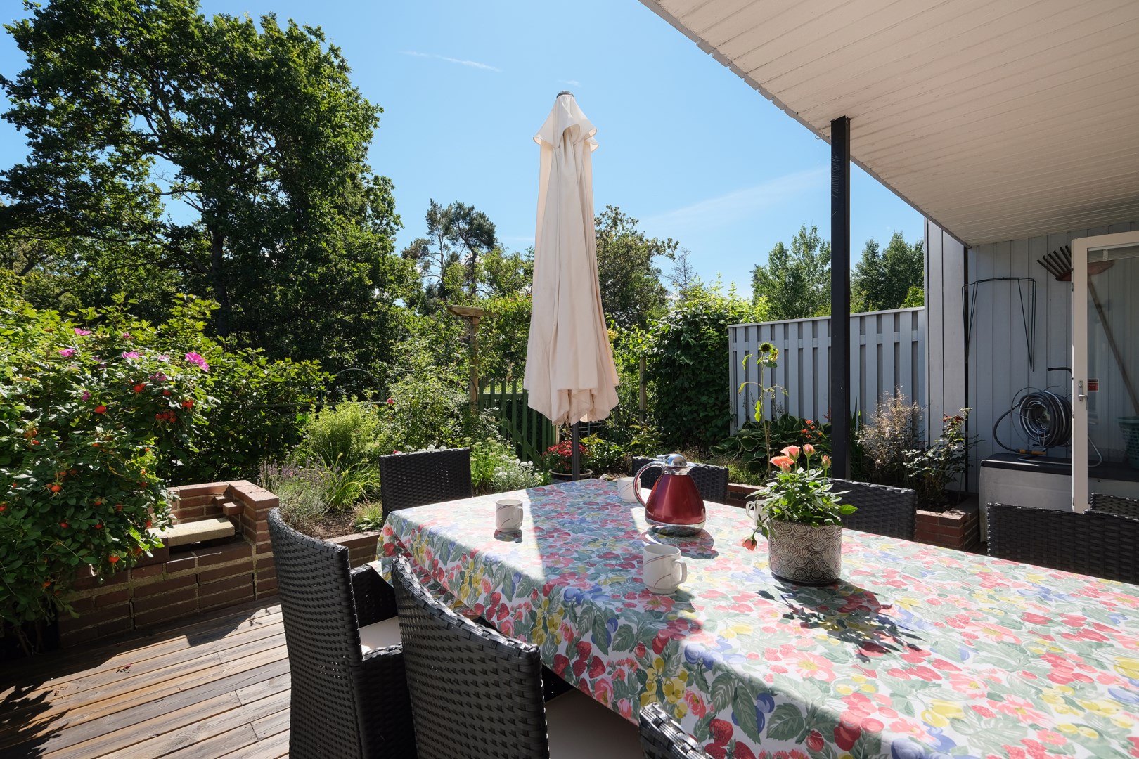 Välkommen till detta mycket hemtrevliga radhus på 133 kvm i underbart läge på stor trädgårdstomt mot ogenerad skogsbacke! Stor skyddad entrésida med träaltan och eget förråd. Huset är genomgående mycket ljust och välplanerat. När man kliver in i entréhallen ser man rakt ut i skogen via den öppna